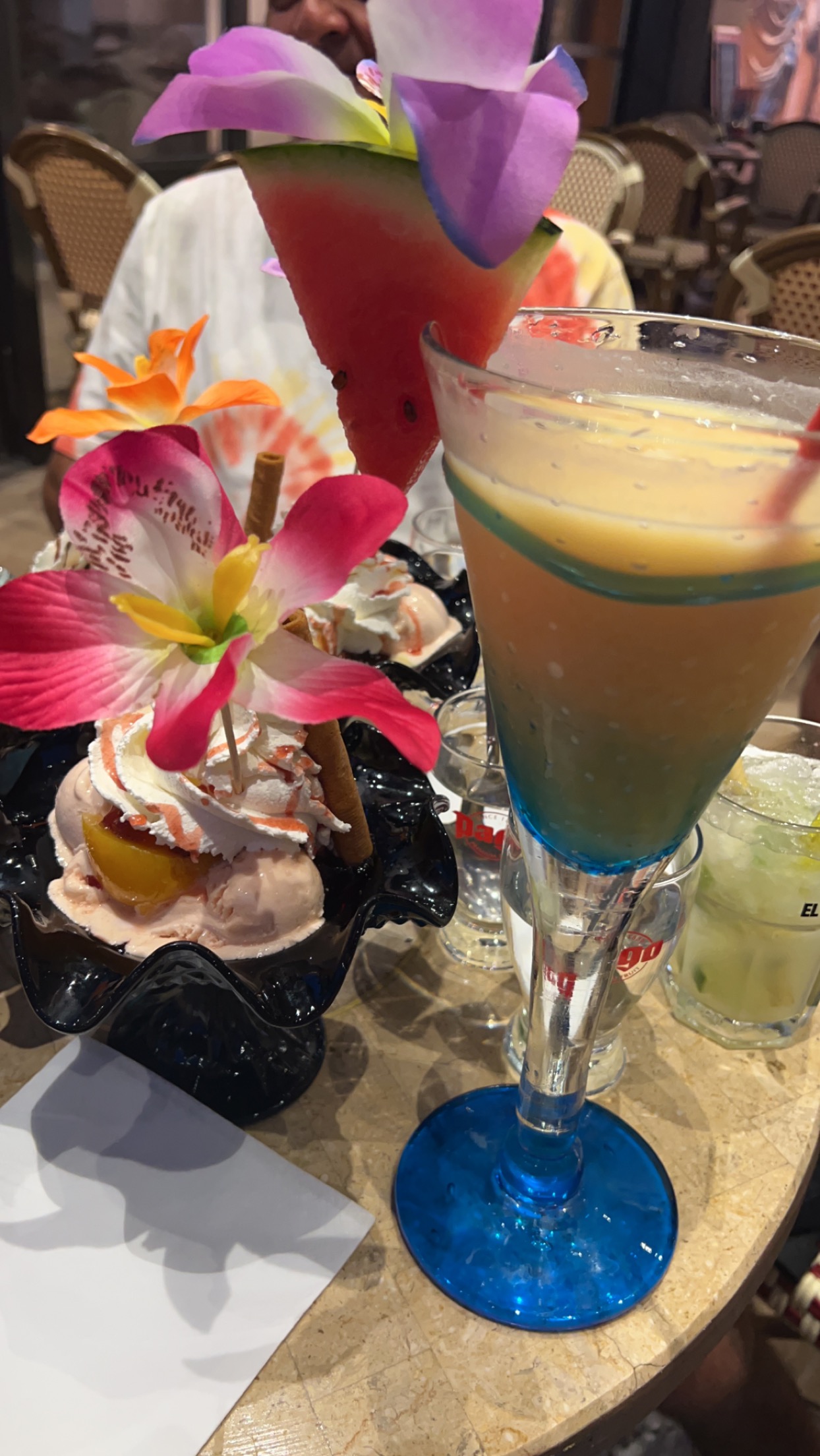 Cocktail au top et glaces également ! Un petit peu plus de sourire et de gaieté pour les serveurs et ce sera parfait 😏😉😉