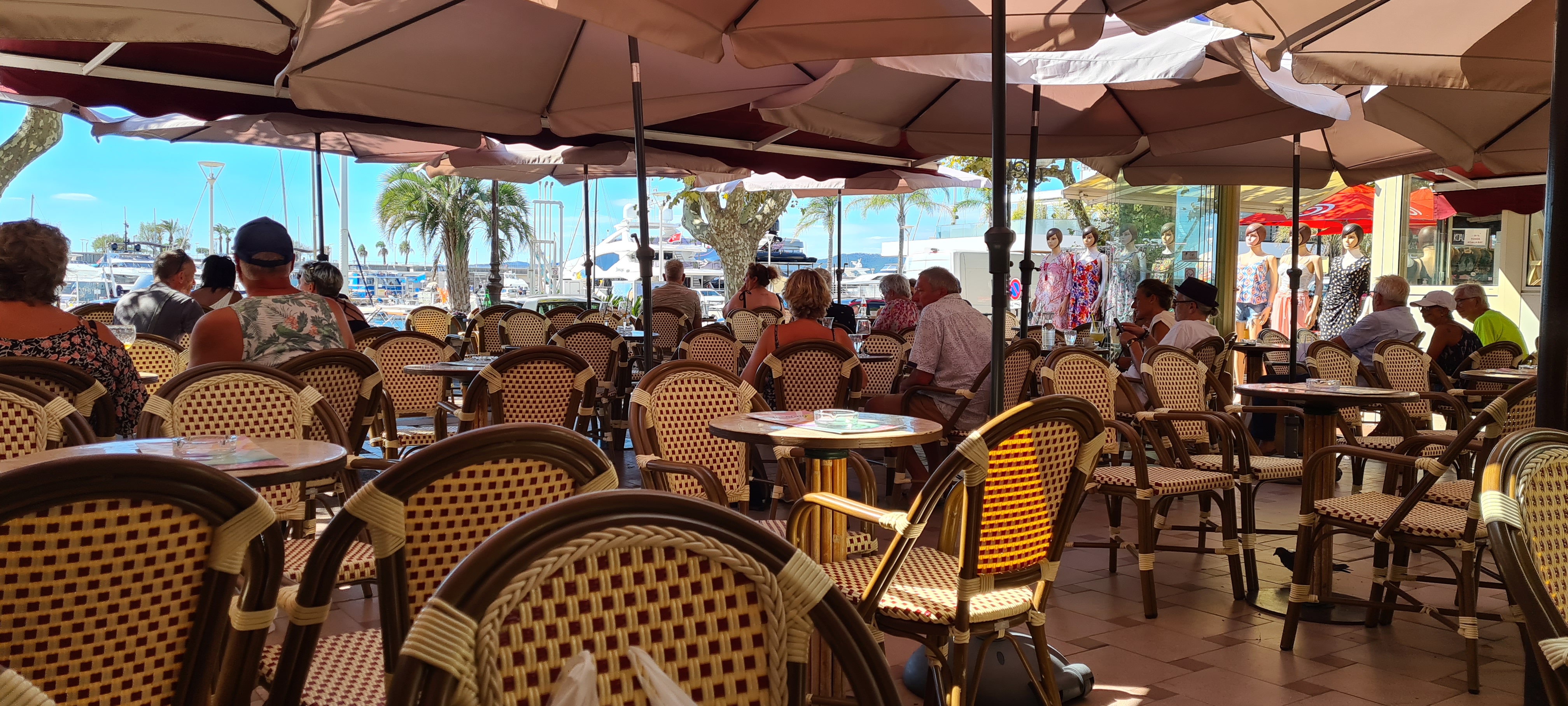 Situation agréable terrasse au soleil offrant une jolie vue sur le vieux port de Saint-Raphaël pour déguster une glace ou boire un verre