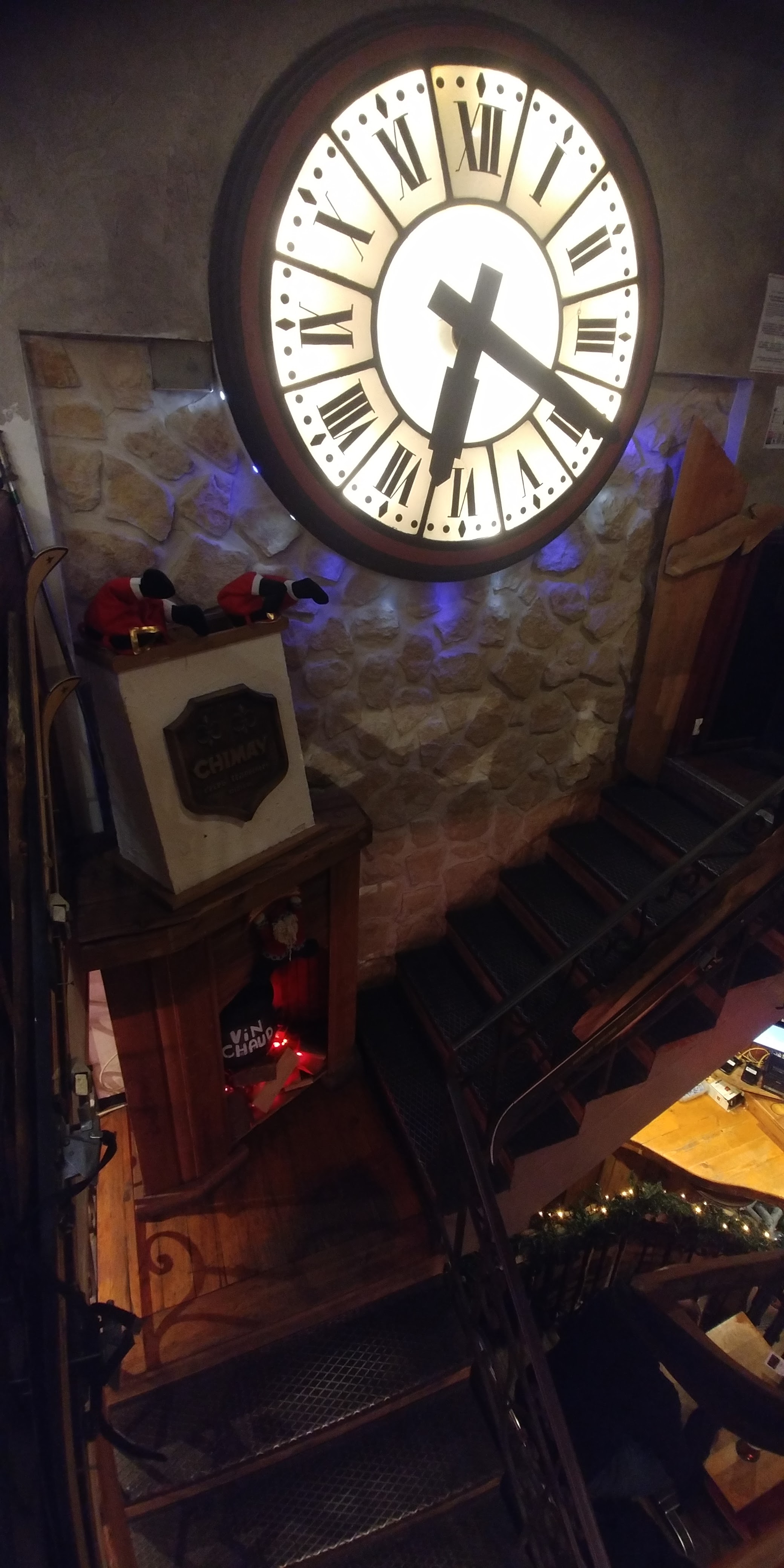 Atmosphère digne des plus grandes stations de sports d'hiver. L'établissement à recréer le cadre d'un chalet de montagne. On y retrouve le feu de bois les skis la fausse neige et bien entendu du vin chaud et même de la bière chaude. Dépaysement garanti