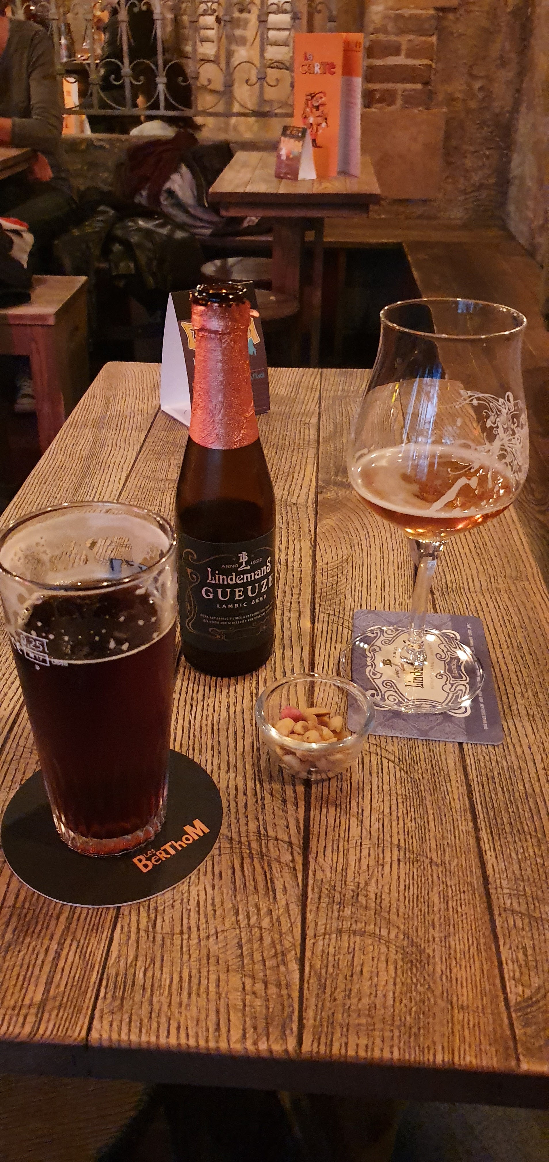 Le choix avant tous ! La première remarque (et la seule) c'est que vous avez le choix et ça qui distingue un bar commun d'un Berthom. Il y a de très bonnes bières, fraîches, servit dans leur verres avec leur dessous de verre ! Donc oui : il est possible de boire une Kwak, dans un verre de Kwak, avec le dessous de verre ! Et ça c'est vraiment bien pour un bar à bière :)