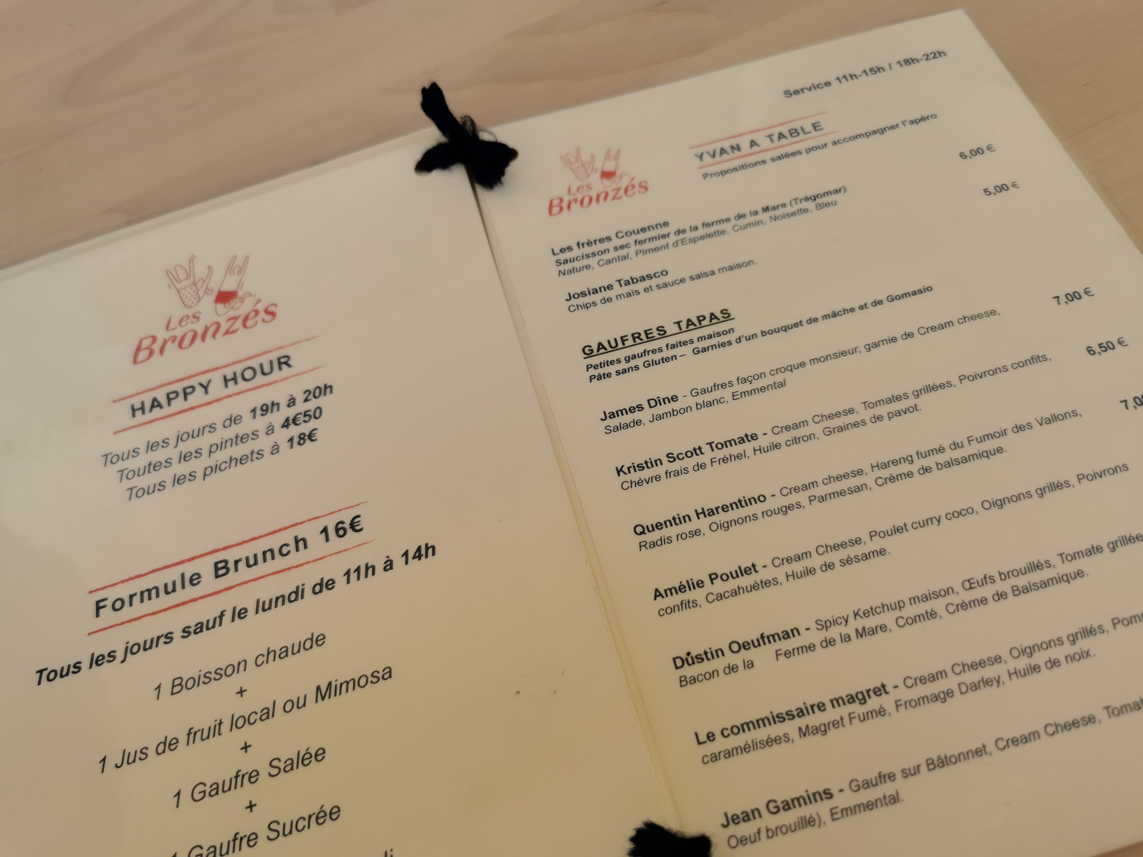 Super concept avec un menu original et des plats qui font référence à des acteurs/films/séries. Nous y avons très bien mangé. Les gaufres et wraps étaient délicieux avec des produits locaux qui font la différence ! Le personnel est très agréable. En photo la gaufre salée Kristin Scott Tomate avec le wrap Croustillant Clavier et la gaufre sucrée Tim Bretonne