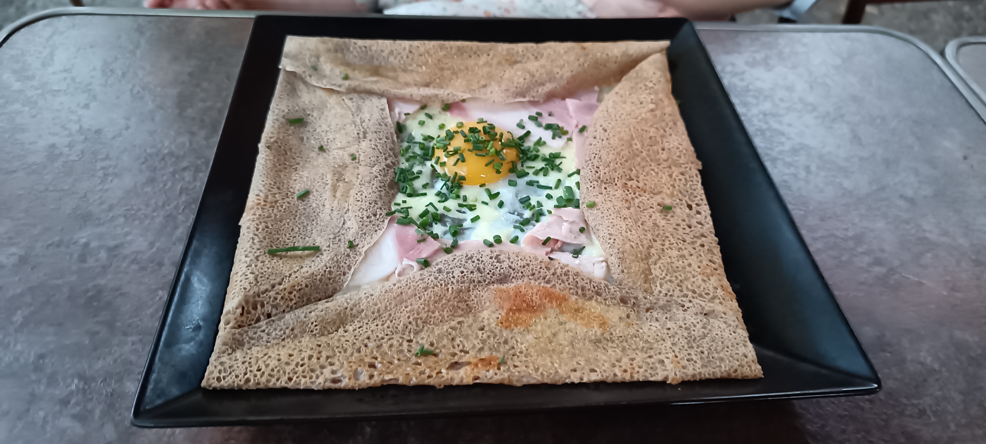 Nous sommes arrivées ici un peu par hasard . Nous nous sommes installées et avons attendue... Un peu... Beaucoup... Passionnément... Et passionnément délicieux surtout. Un personnel d'une extrême gentillesse, un cuisinier qui sort de sa cuisine pour rehausser notre table et nous mettre à l'aise . Une crêpe fine, faites maison par un véritable artisan crêpier , pas du tout sèche , un jambon excellent , pas gras avec un goût réel de porc . Finalement , l'attente c'est avéré un plaisir au milieu des sourire et d'un repas de qualité . Très bonne expérience, je recommande
