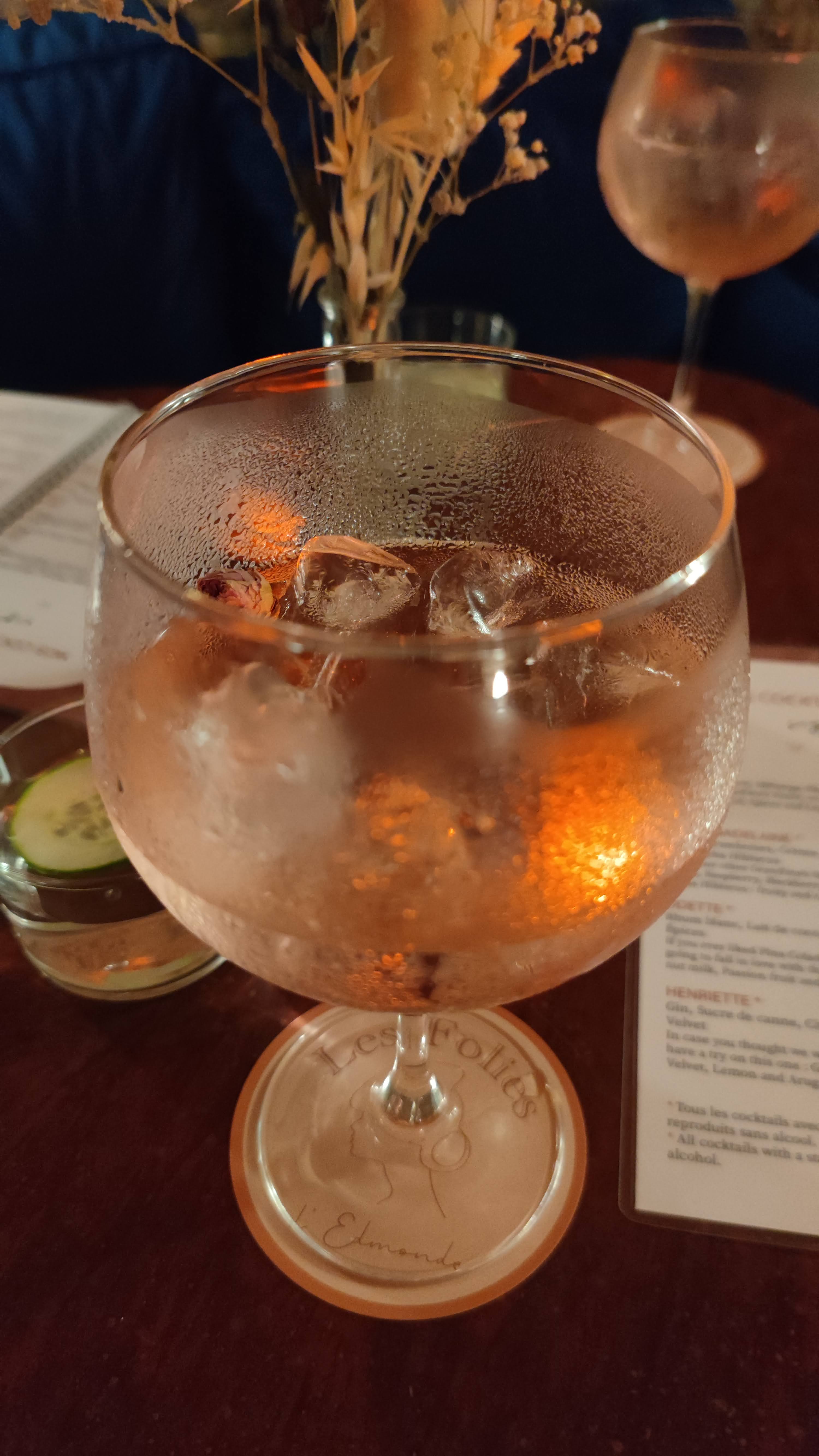 Nous avons passé un super moment chez les folies d'edmonde , les cocktails sont délicieux,de qualités et ils sont tout simplement magnifiques, en effet la présentation est impeccable. Petit plus pour l'attention apporté au détails (les cacahuètes, et le verre d'eau concombre.).les prix sont très abordables pour cette qualité. L'ambiance est également excellente les deux sœurs sont extrêmement gentilles et nous mettent à l'aise directement. L'endroit est original et jolie décoré avec beaucoup de goût. Je recommande cette endroit a 100% ,nous reviendrons sans hésitation pour découvrir d'autres cocktails et leurs événements (karaoké, stand up humoristique, drag show). Merci beaucoup et à très vite!!