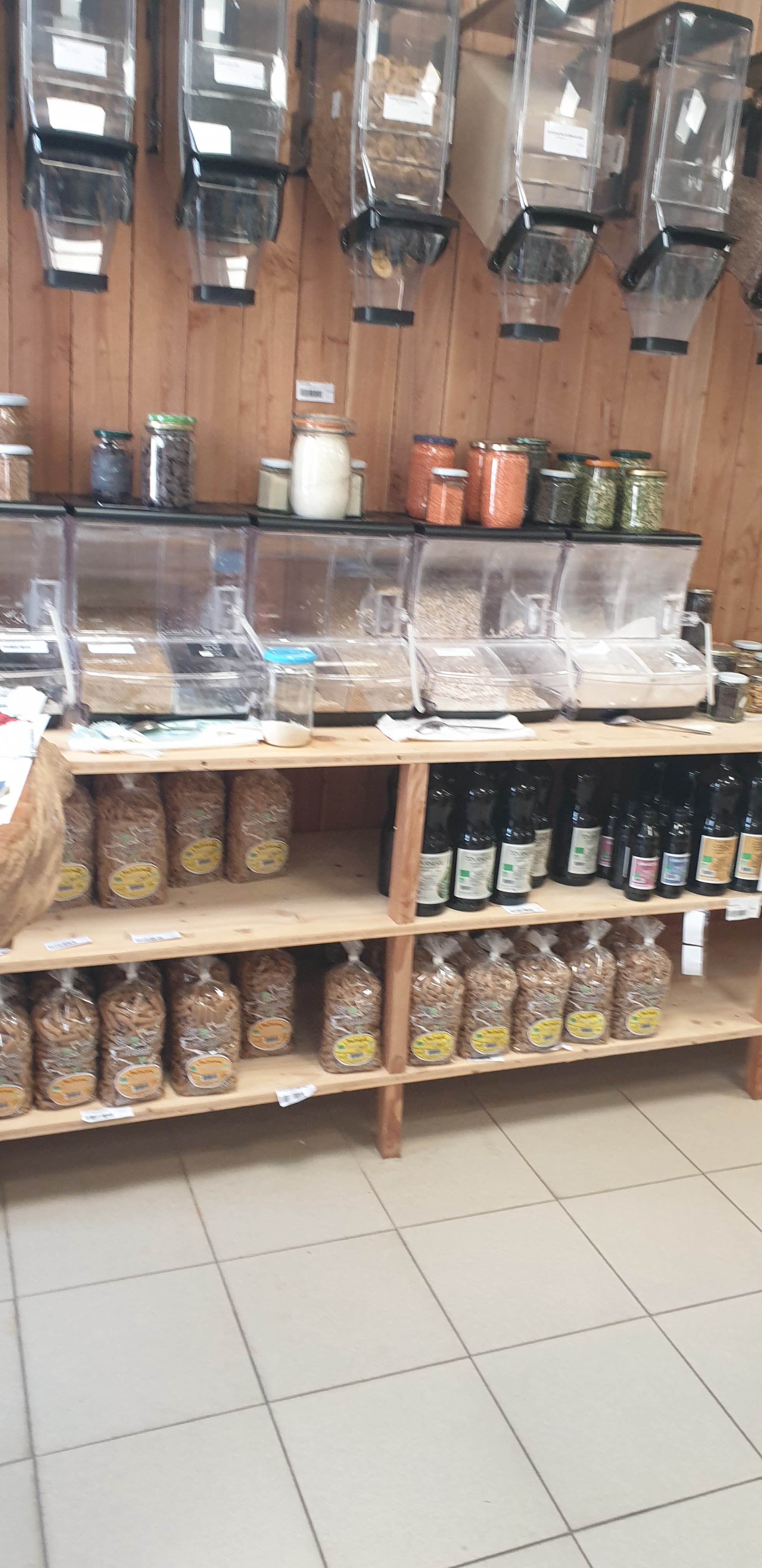 Lieu sympathique où vous trouverez des produits locaux et des produits en vrac. Commerce agréable et bien aménagé tenu par des personnes professionnelles et souriantes.