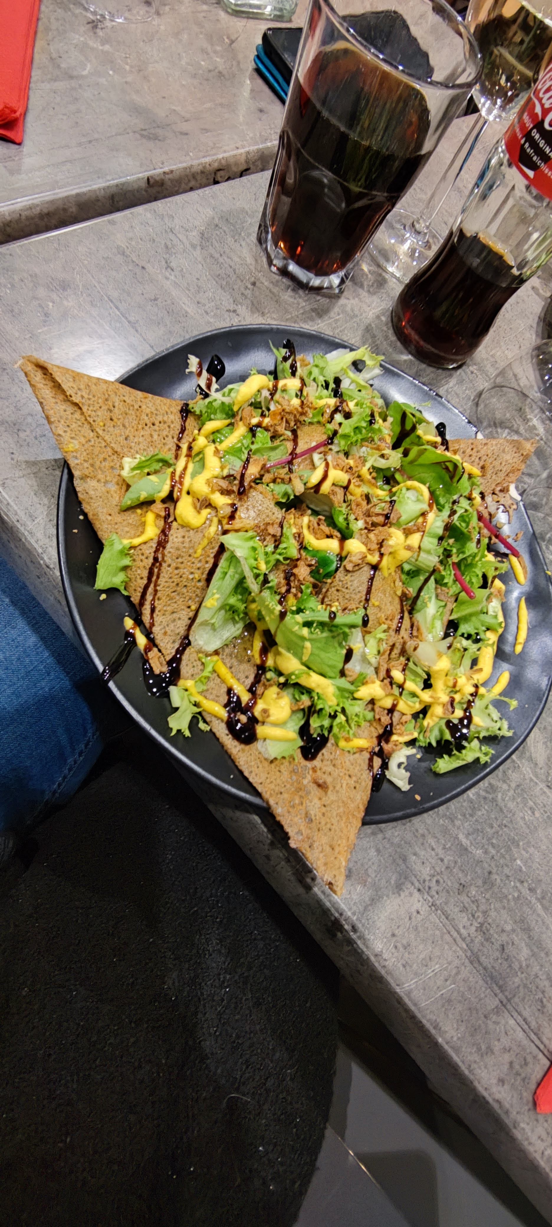 Très bonne surprise pour une crêperie, on est à l étage. Ambiance tranquille, ils acceptent les enfants et poussette. Galettes originales avec une salade et sauce balsamique. Ne pas hésiter si vous passez dans le quartier. Accueil sans faute.
