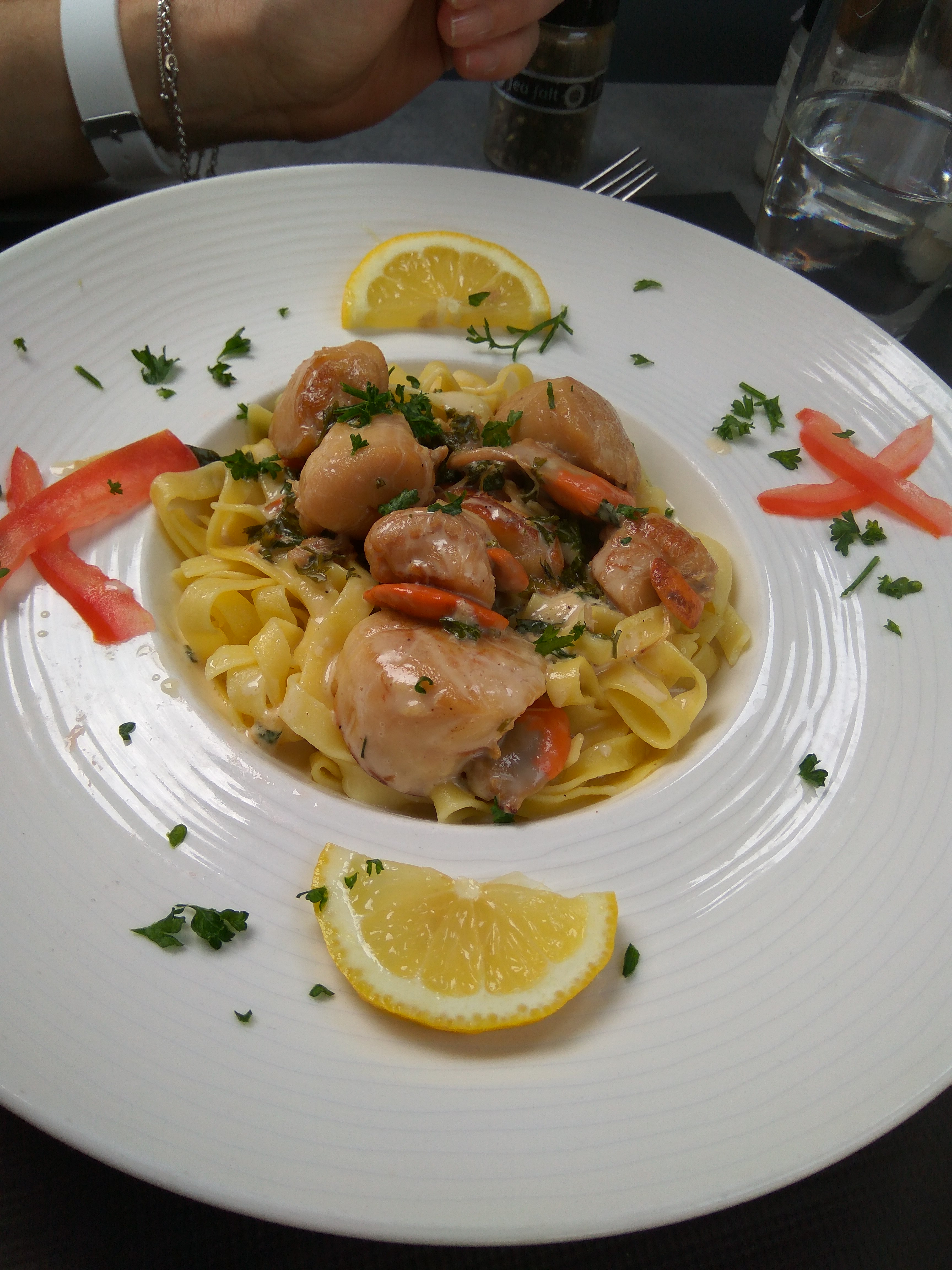 Fricassee de st Jacques aux champignons et tagliatelles excellent n'hésitez pas