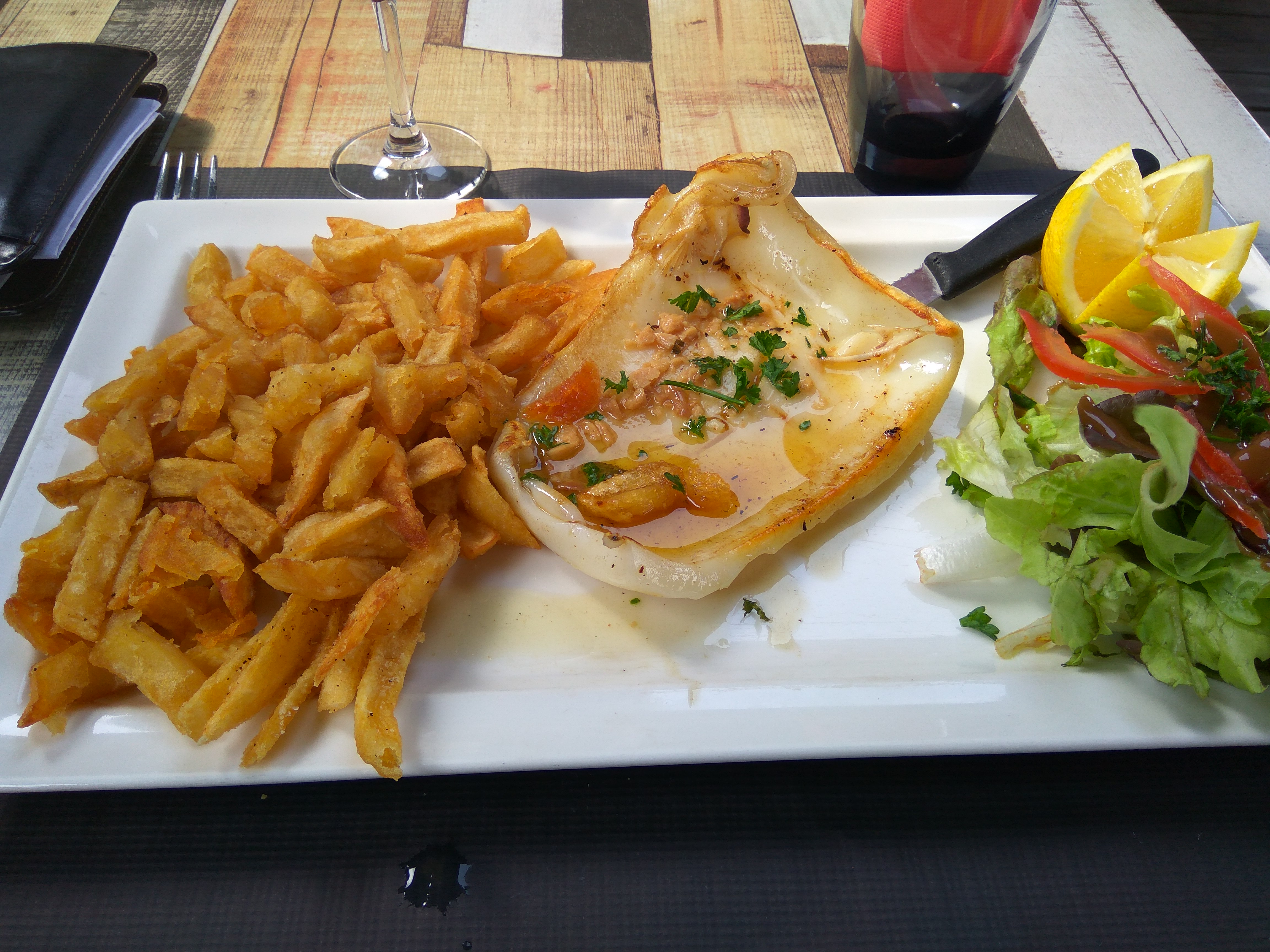 Très bon fruits de mer, service rapide et Sympa comme déjà dit dans les autres posts, une valeur sûre de l'île. Ma sèche tiède en salade est une très bonne idée .