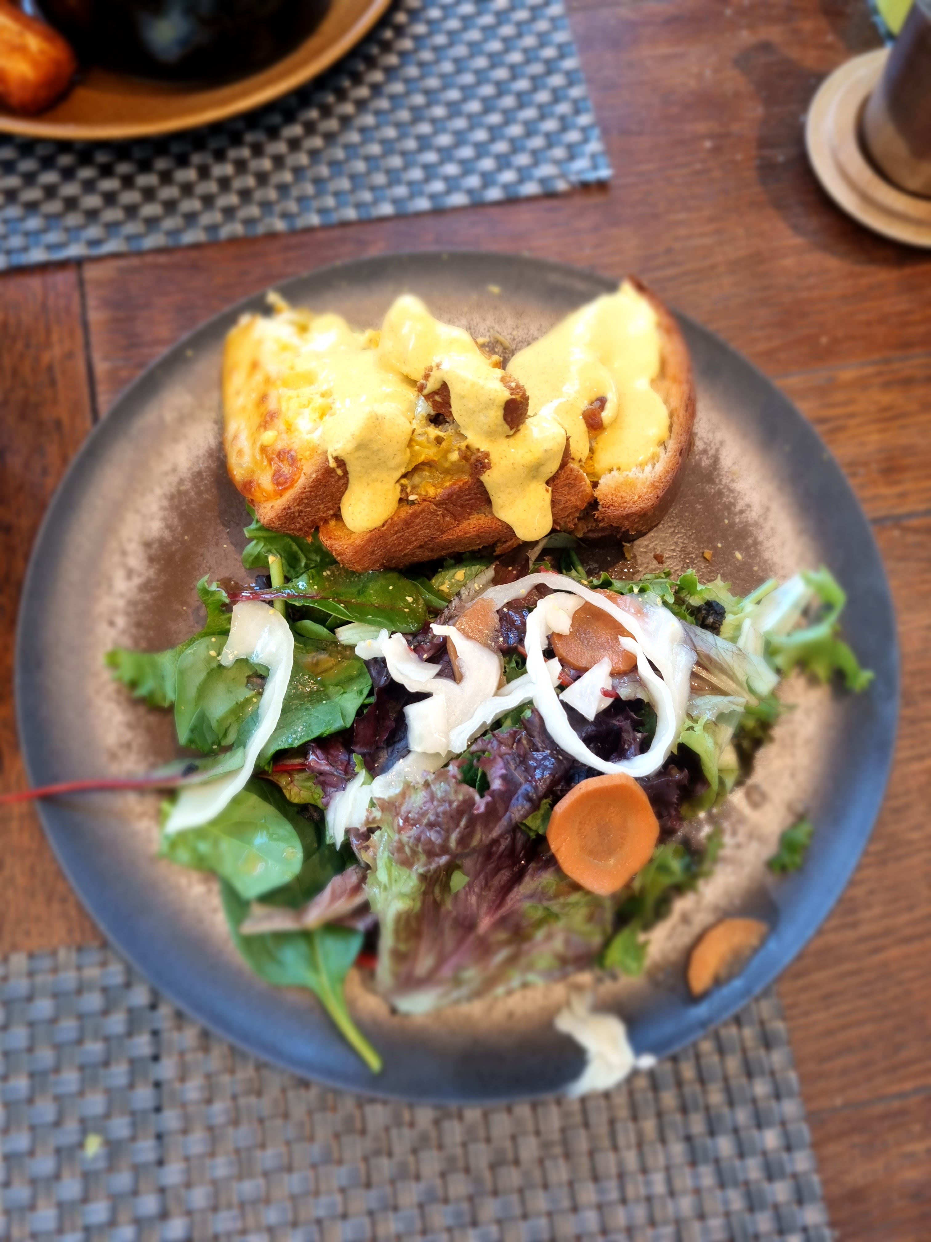 Un brunch exquis. Une purée de patate douce juste excellente et un croissant jambon beurre d'une rare qualité. L'ambiance de la salle est charmante et l'équipe est accueillante. Je recommande fortement.