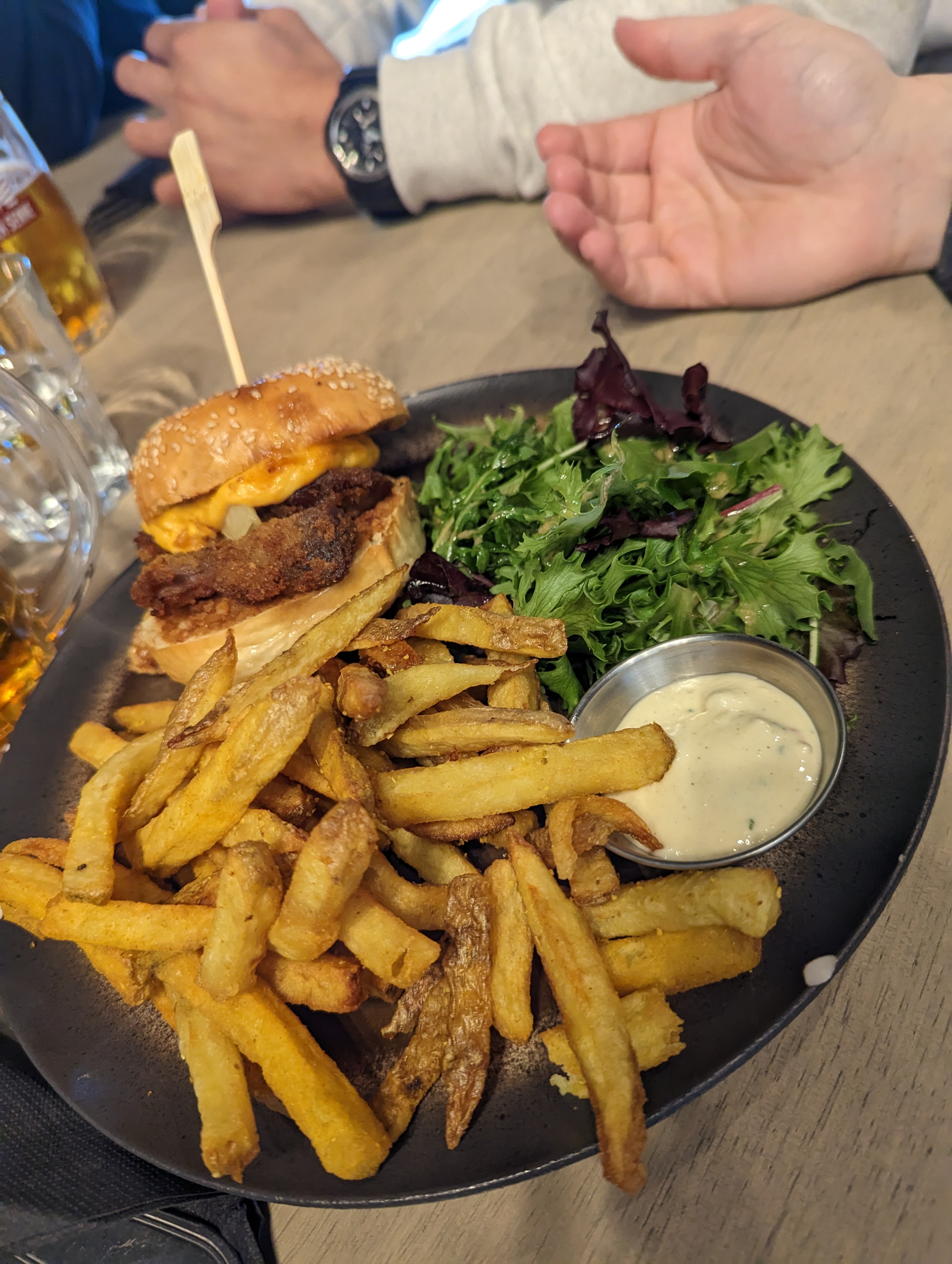Un peu déçu. J’ai pris le burger au bœuf. Je ne l’ai pas trouvé exceptionnel… Pourtant, je suis le plus grand fan de burgers de la planète… Et je n’ai pas trouvé l’assiette très copieuse… :( Honnêtement le serveur est sympa, le lieu est cool, mais je crois que je ne suis pas satisfait du rapport qualité/prix. Trop cher / plat moyen. Pourrait bien mieux faire à mon avis. Dommage, il y a du potentiel pourtant à mon avis.