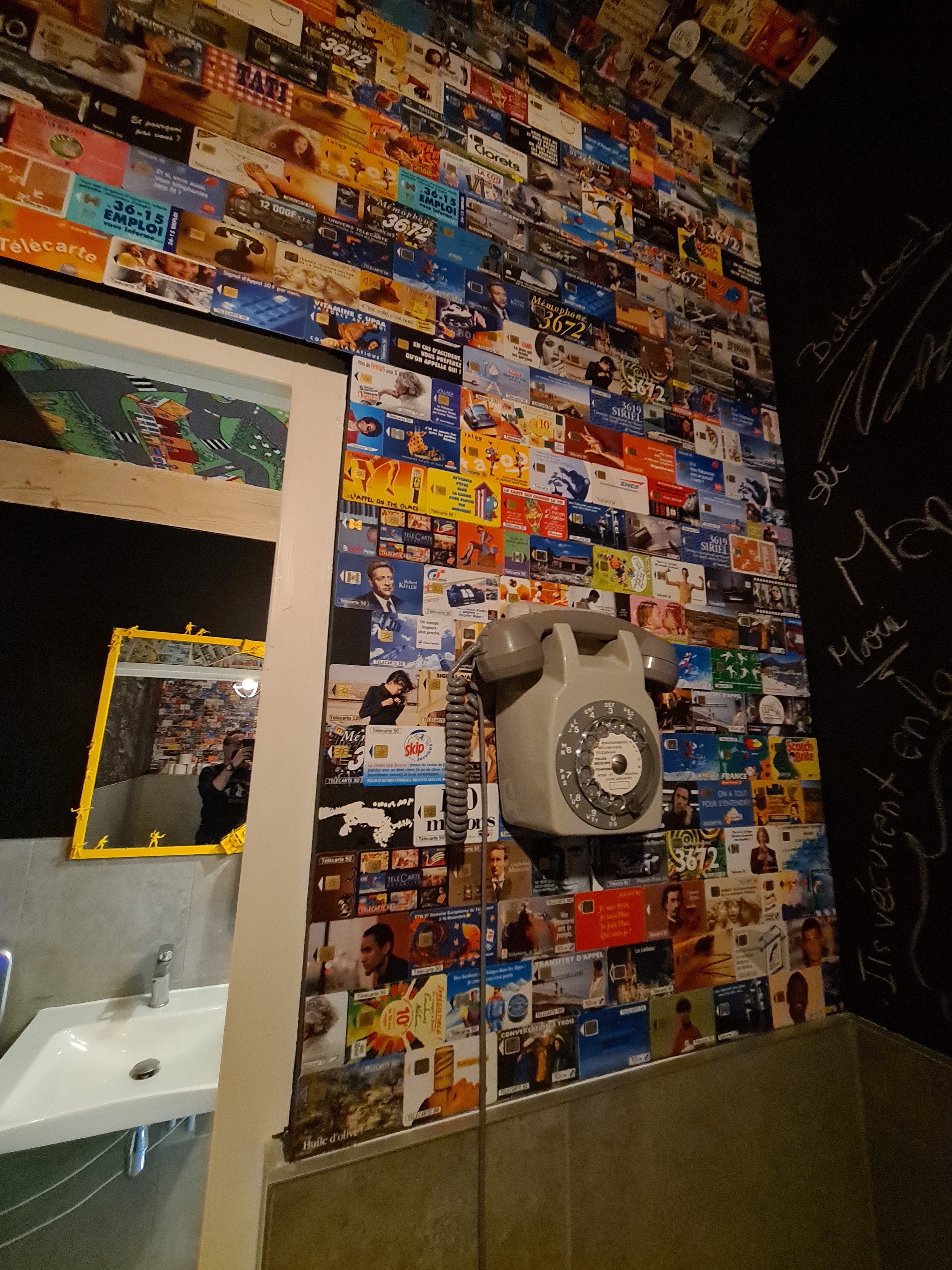 J'ai vraiment adoré cette endroit, la décoration est vraiment géniale et surtout les toilettes avec les anciennes cartes téléphoniques 👍👍 Les boissons, le choix des pâtisseries, le staff sont aux tops. Si vous vous ennuyez, l'établissement proposent un nombres de jeux de sociétés impressionnant pour vous divertir entre amis, à l'étage vous pouvez aussi vous régalez en regardant une belle expositions de photographie. Vraiment génial sur bois blanc.