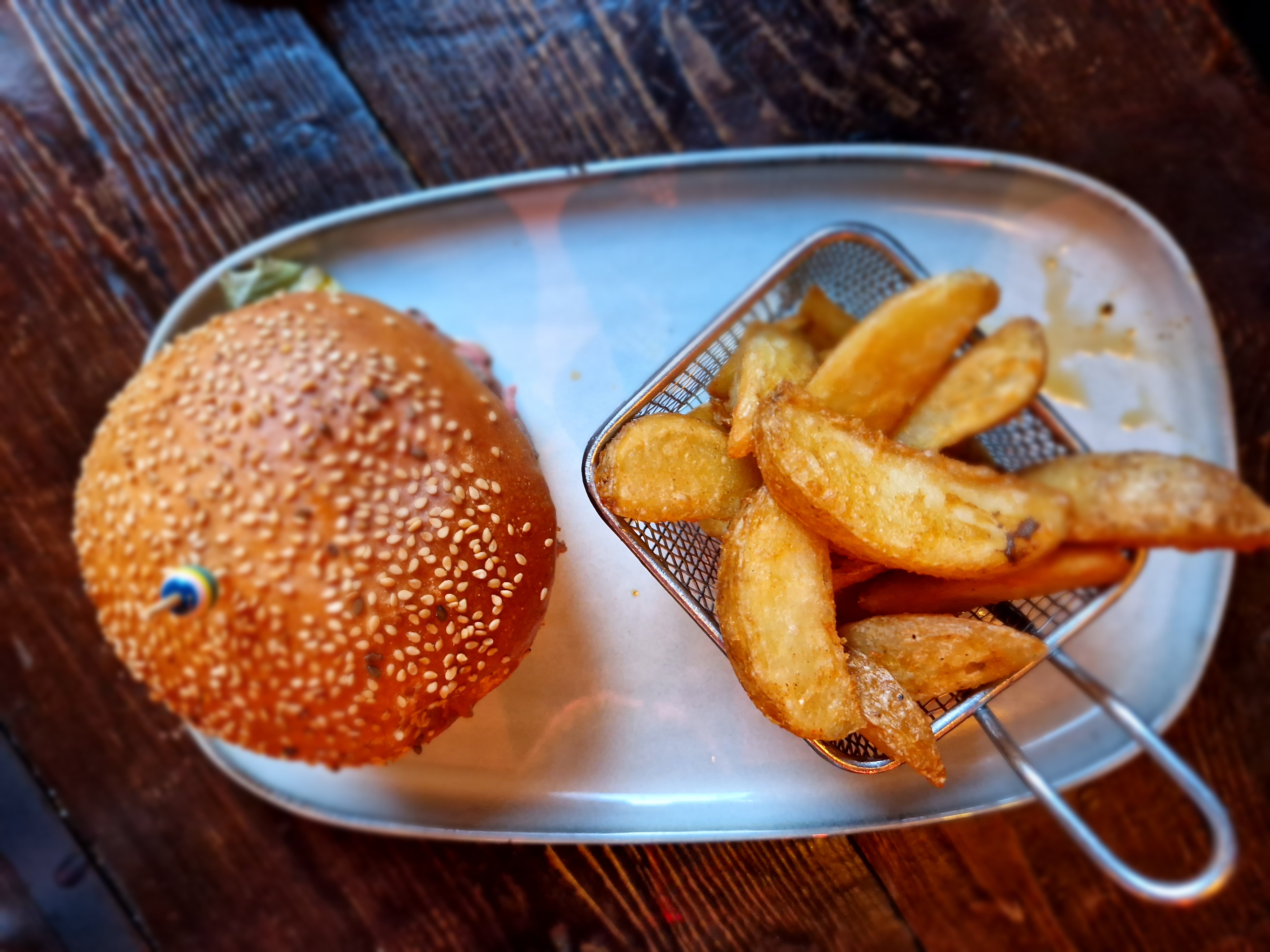 Relativement déçus… service compliqué… on nous amène les plats et puis en fait non ce n’est pas notre commande mais celle de derrière. On nous ramène à nouveau un seul burger sur les 2 car cette fois y a encore un soucis avec un burger L’eau le pain est à demander plusieurs fois avant que ça arrive… Erreur de commande à la table devant nous aussi bref on sent que le service est compliqué… Les burgers très basiques pas mauvais mais rien d’extra non plus. Le menu enfant certaines pates sont sèches… burgers demandés bleus et reçus presque à point. L’addition arrive sans note je demande à voir le détail. Le petit verre de sirop inclus dans la formule nous a été compté en plus : 4€ ! Ça fait cher le petit gobelet qui est censé être inclus. Heureusement que j’avais demandé le détail. Et la on me dit que l’on va me donner un sirop à emporter ! Assez étrange ! Non je souhaite être remboursée de ce sirop compté en plus pas en avoir un de plus ! Bref vraiment pas top. D’ailleurs les clients derrière nous ont également gentillement exprimé leur mécontentement. C’est dommage le lieu est sympa et le personnel qui paraît dépassé reste courtois et gentil. Malheureusement nous ne retiendrons et recommanderons pas cette adresse.