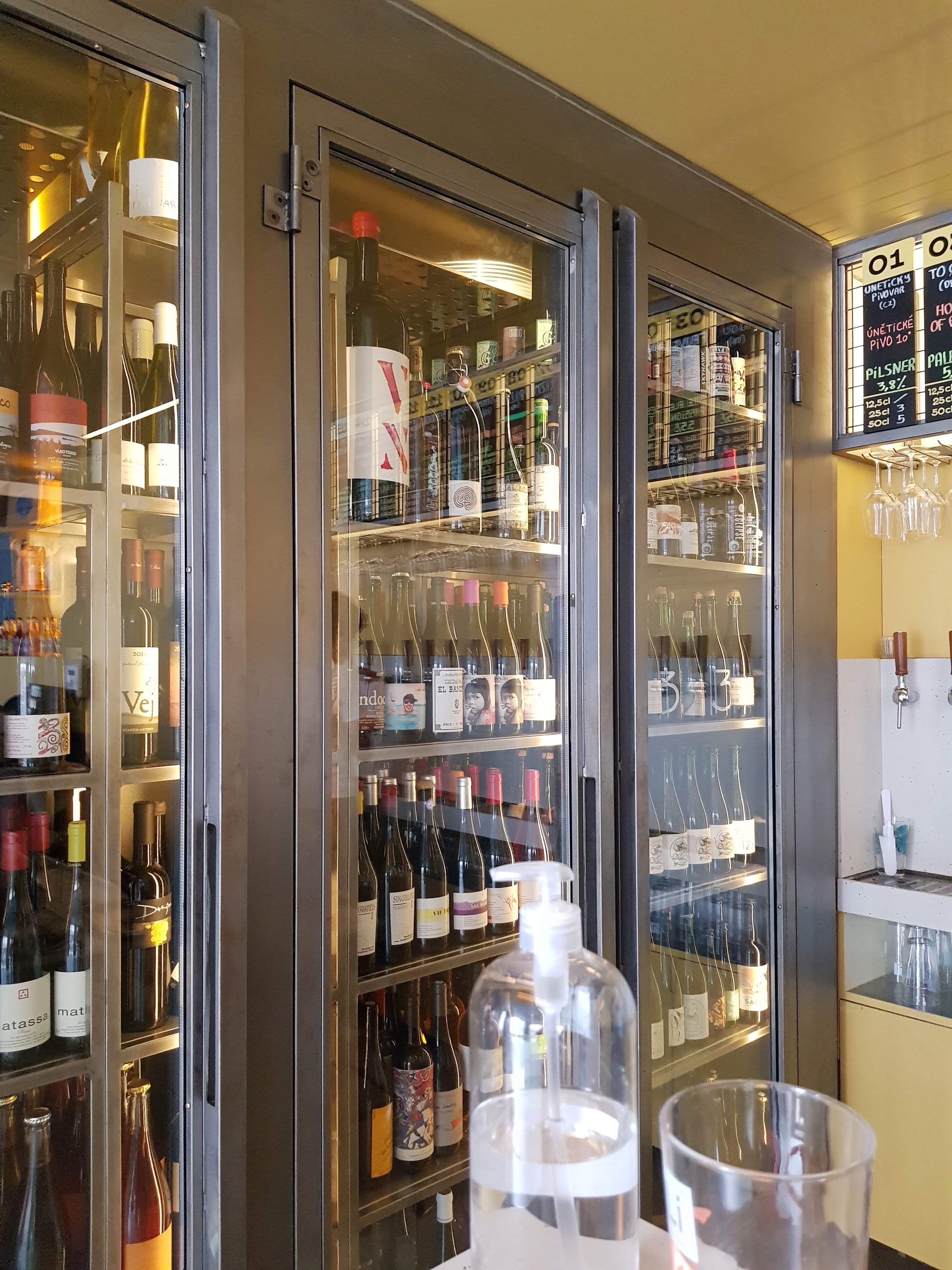 Peu de place mais une très bonne sélection de bières artisanales et de vins naturels, sur place comme à emporter