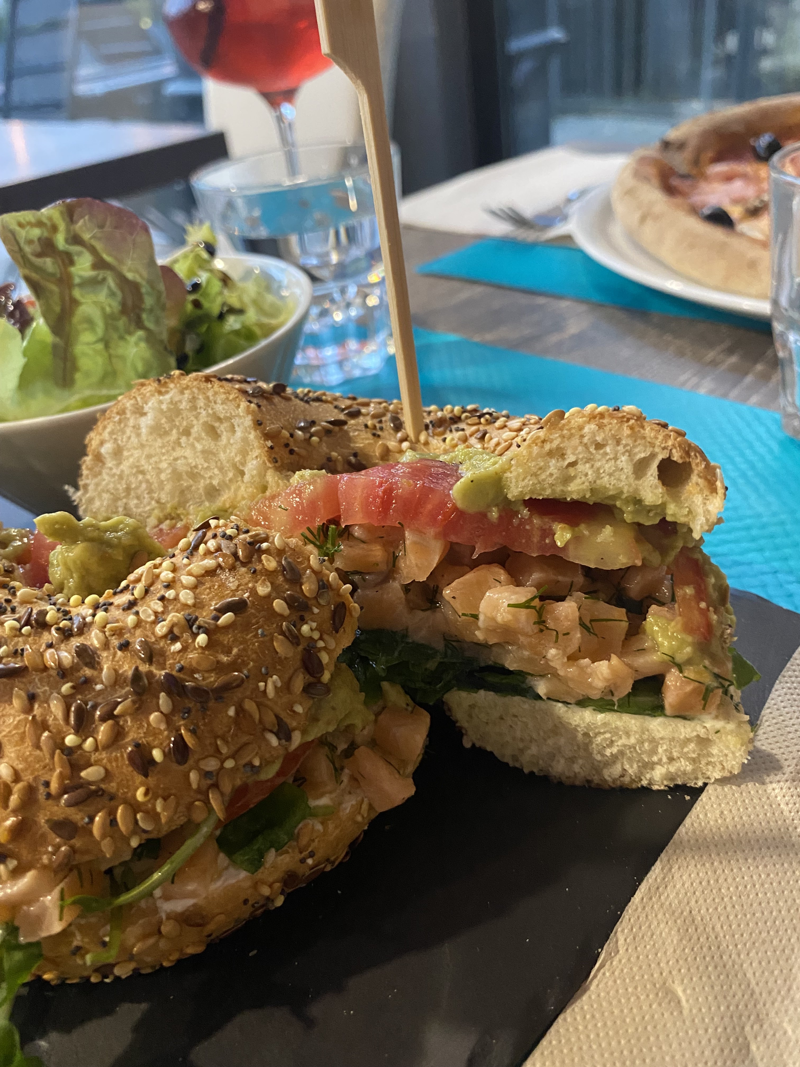 des belles et généreuses pizzas ! Mais je viens souvent les bagels 🥯 Une salle sympa et calme avec un serveur qui a un super sens du service.