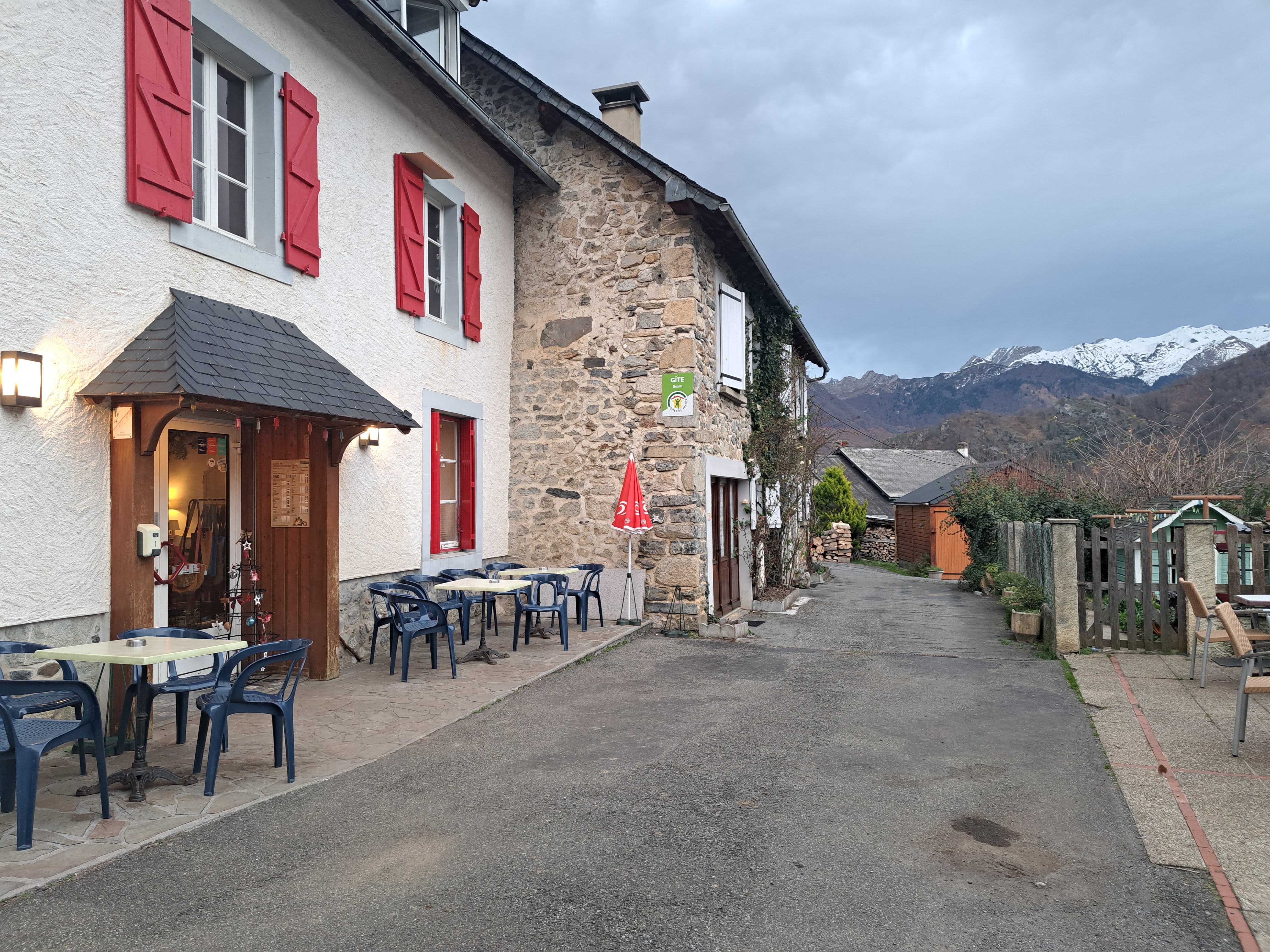 Repas sympa en exterieur dans un cadre vraiment beau du Haut Bearn. Ces petits restos sont des lieux de vie dans ces villages.