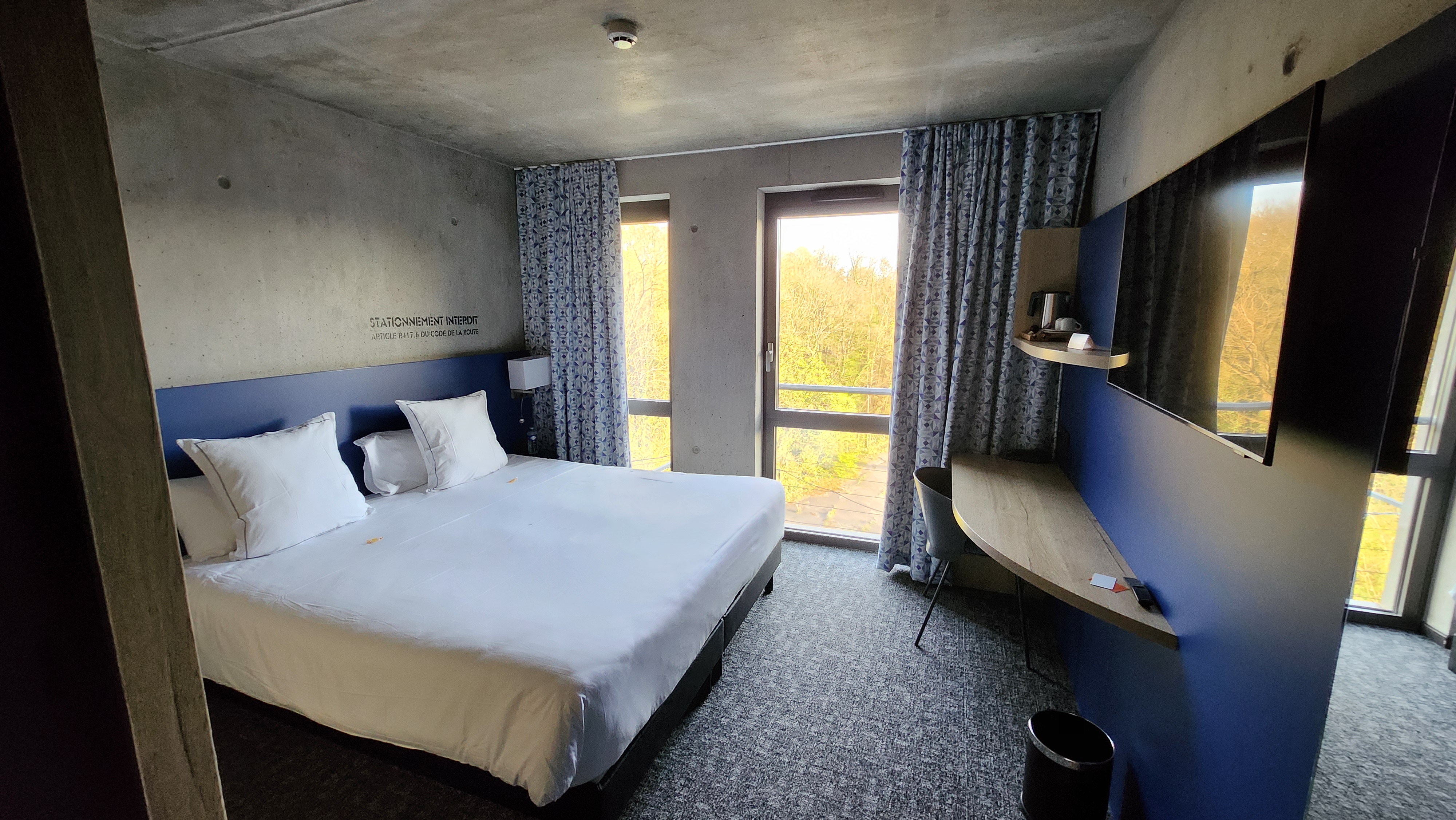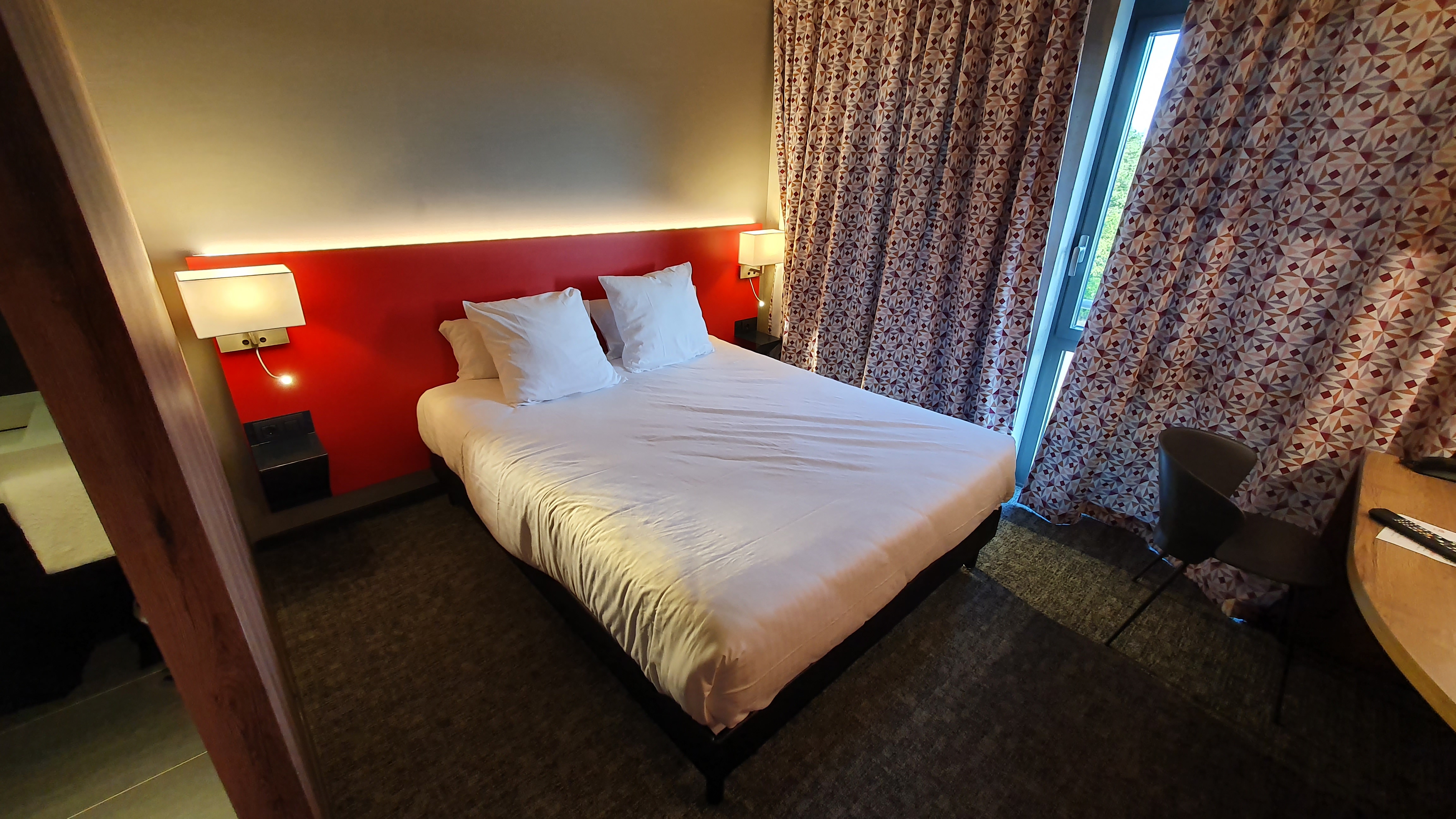 Un très bon hôtel si vous êtes un couple ou une famille paire. Lorsque nous avons réservé, seules des chambres pour deux personnes par chambre étaient disponibles (donc pas de chambre familiale, ce qui signifiait que nous devions réserver deux chambres adjacentes). Les lits sont pratiques et nous avons vraiment passé une bonne nuit de sommeil, ce qui a porté ses fruits le lendemain de notre voyage. Le personnel est sympathique et efficace. L'hôtel a été construit presque entièrement en béton et l'isolation phonique interne est imbattable. Nous avions les chambres 309 et 310 donc à l'arrière de l'hôtel donnant sur un espace vert sans immeuble ni voisin et au loin on aperçoit l'arrière du centre commercial Auchan. Le plus drôle, c'est que lorsque vous montez au 3ème étage depuis la réception, vous descendez en fait d'un étage.... Assurez-vous d'arriver suffisamment tôt pour capturer l'une des places de parking en face de l'hôtel. L'espace de stationnement est limité.