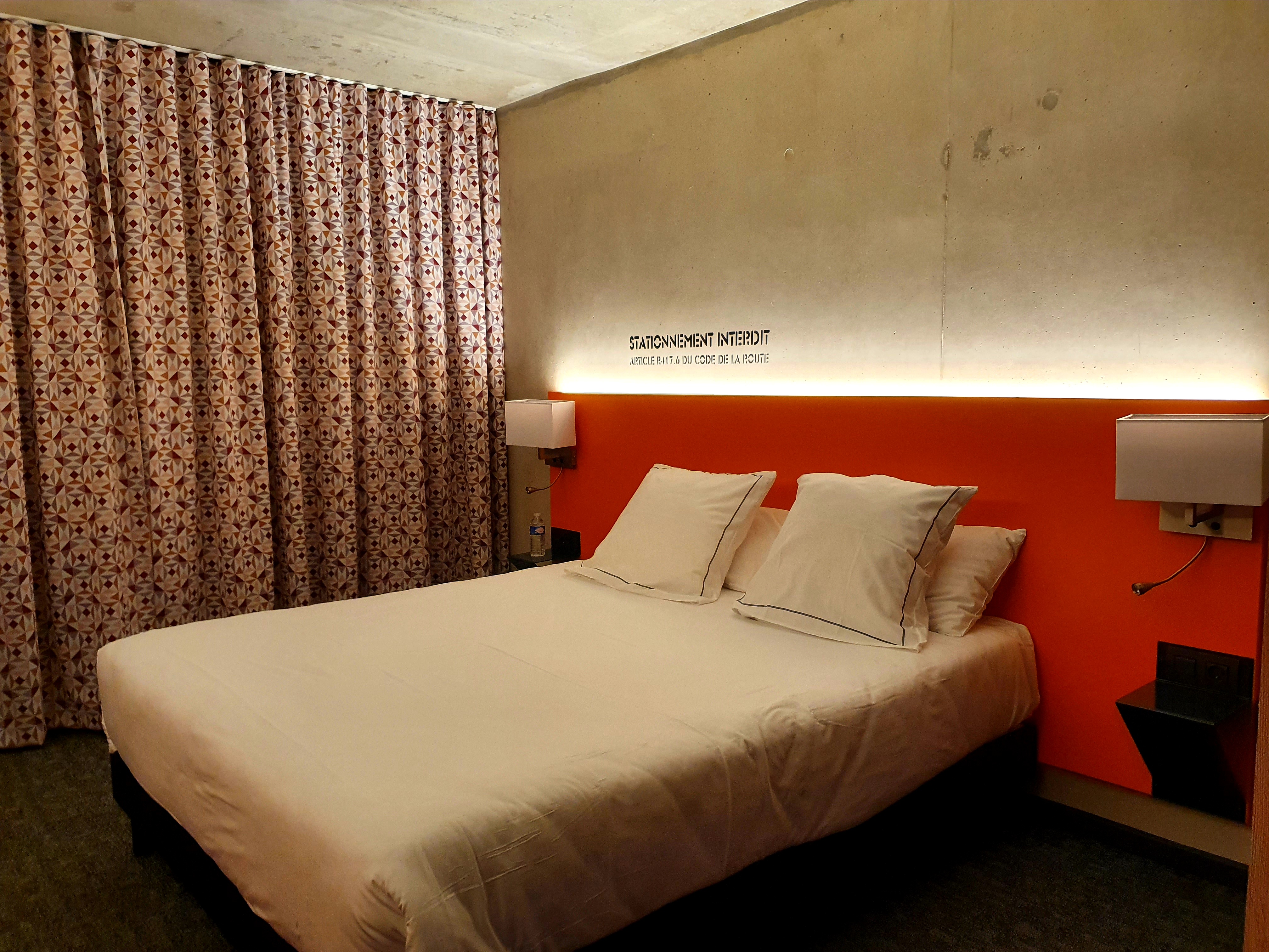 Un prix comparable aux ibis mais qualitativement d un niveau au dessus. Chambres spacieuses et confortables. L hôtel est design et a des éléments de déco qui sortent de l ordinaire. C est original. Le petit déj vaut le coup. Et le coût. Personnel à la réception chaleureux souriant et accueillant. Ça fait du bien. Je vous recommande vivement. Le patron est le même que le restaurant juste à côté de l hôtel que je vous recommande aussi si vous avez un petit creux et aimer les restos type brasserie.