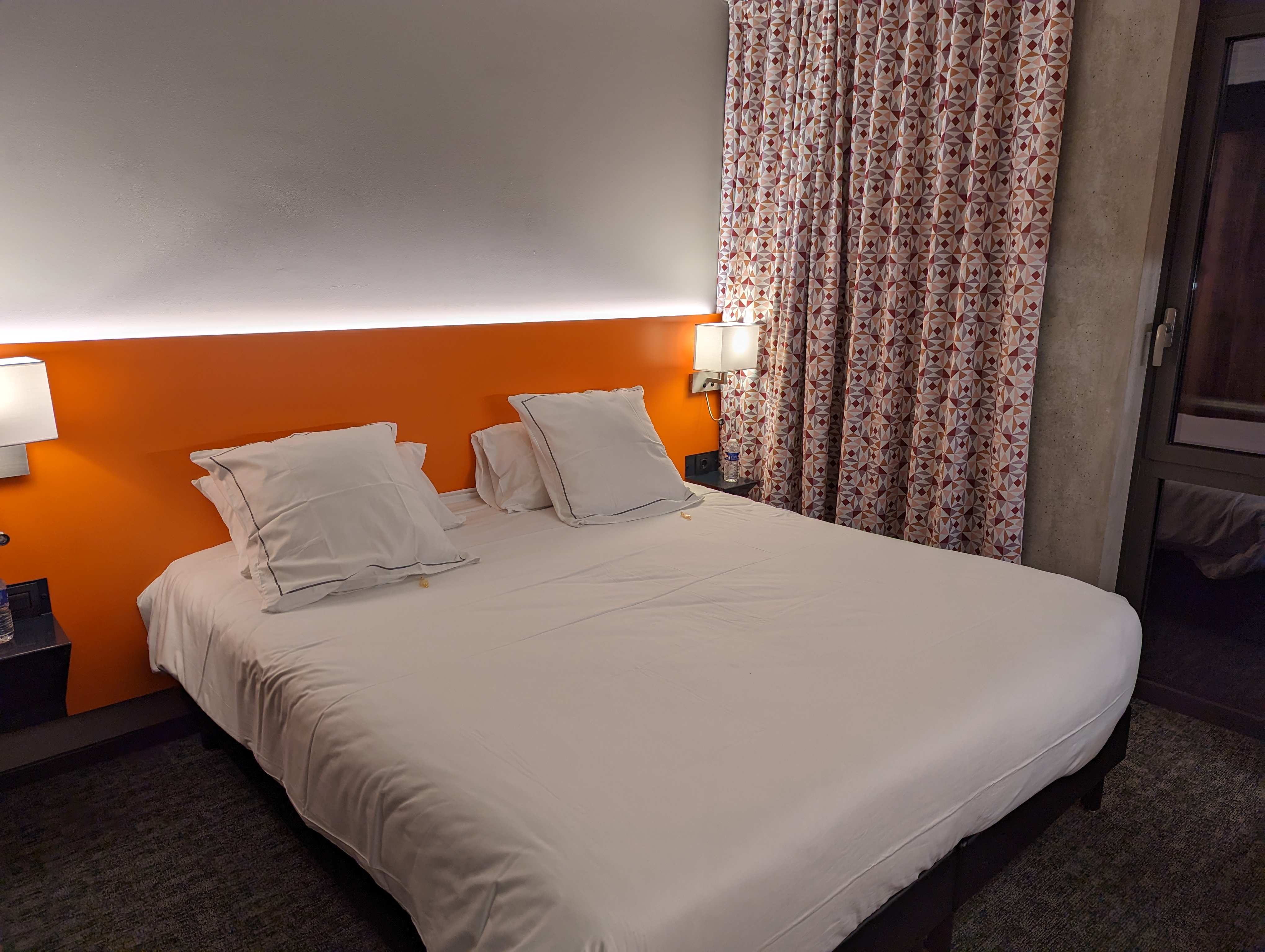 Très bel hôtel. Chambre pas grande mais bien aménagée et confortable. Parties communes très agréables. Attention le restaurant n'est pas dans l'hôtel. Il faut traverser un parking pour y arriver. Restaurant très correct. Ce que j'ai détesté : discussions sans fin au moment de payer car on me réclamait de payer un petit déjeuner (celui du dernier jour) qui était compris dans ma réservation via Expédia. (15€ le petit déj ! ). A l'arrivée on m'avait confirmé que les petits déjeuners étaient bien compris mais au départ comme la réservation était passée en 2 réservations différentes sur 3 nuits (j'ignore pourquoi), l'accueil m'a réclamé le paiement du dernier petit déj... J'ai du aller chercher les éléments de preuve sur mon ordinateur pour qu'à la fin on m'explique que La Direction a accepté de m'en faire cadeau et que le personnel n'était pas habilité à faire des cadeaux. je n'ai pas demandé un cadeau, je voulais juste payer ce que je devais. Je n'ai pas apprécié avoir été mis en doute à ce point et que l'on m'explique que je pouvais être une personne mal intentionnée. Je complète suite à la réponse Du gérant qui est un lenteur. Il n'était pas présent lors du checkout. Très déçu de ce comportement tout sauf commercial. Il y a d'autres hôtels autour ..