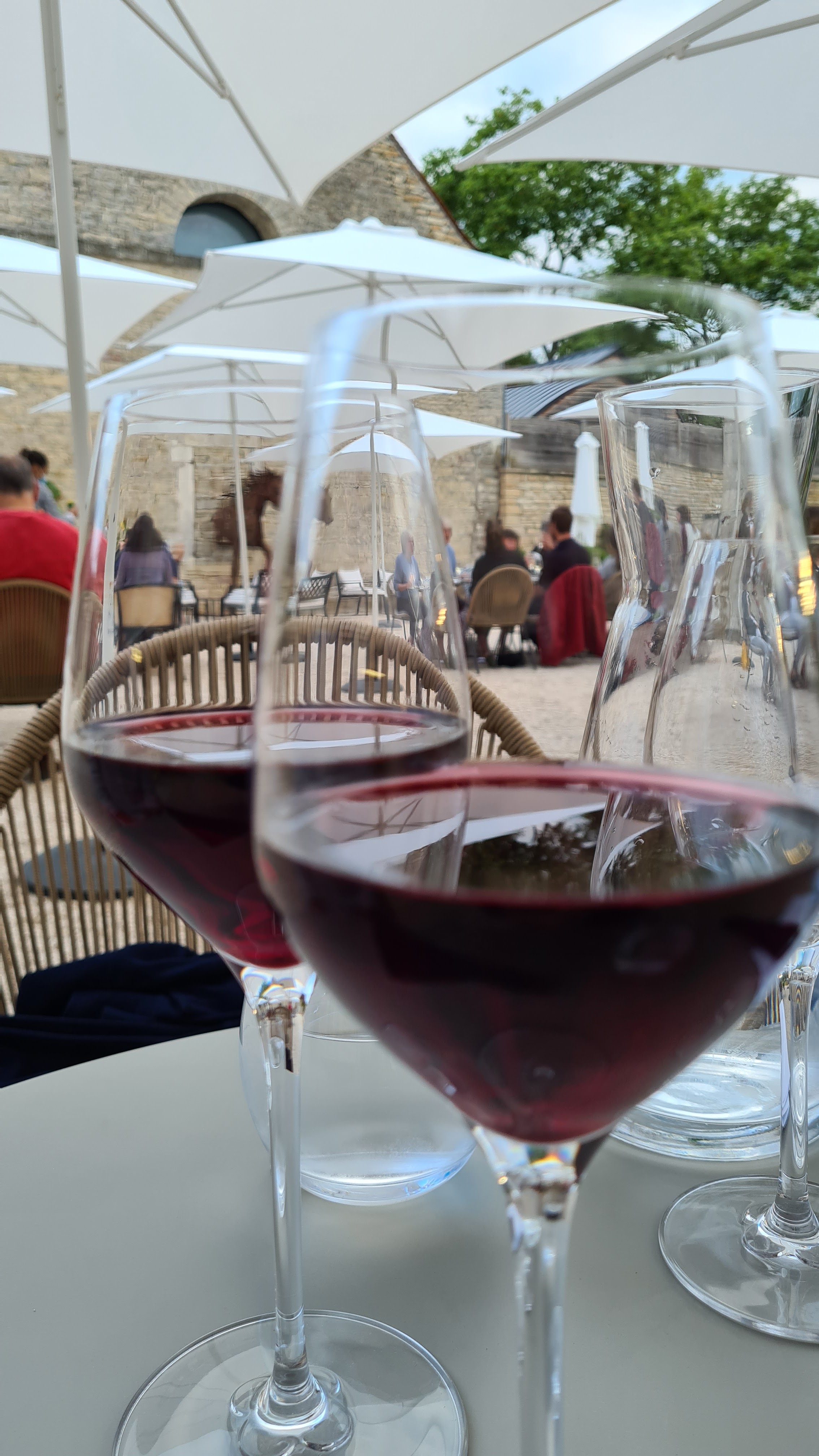 Peu visible de l'extérieur, mais immense (80 ha) et domaine viticole relativement jeune. Les vins peuvent être dégustés individuellement ou en dégustation ; la dégustation se décline en deux versions payantes (plus petite ou plus grande) ; Cependant, l'abondant Grand Crut (l'un des rares emplacements se trouve ici !) ne peut pas être dégusté au verre ou en dégustation. Les prix varient d'environ 29 € à plus de 150 €. Il existe une petite sélection de petits plats à manger, des escargots (prix correct) au cavier (129 € la portion). La cour avec le jardin et les vieilles colonnes est incroyablement idyllique. Malheureusement, les quelques vins réellement très bons étaient déjà épuisés ou « invendables » ; Pitié!