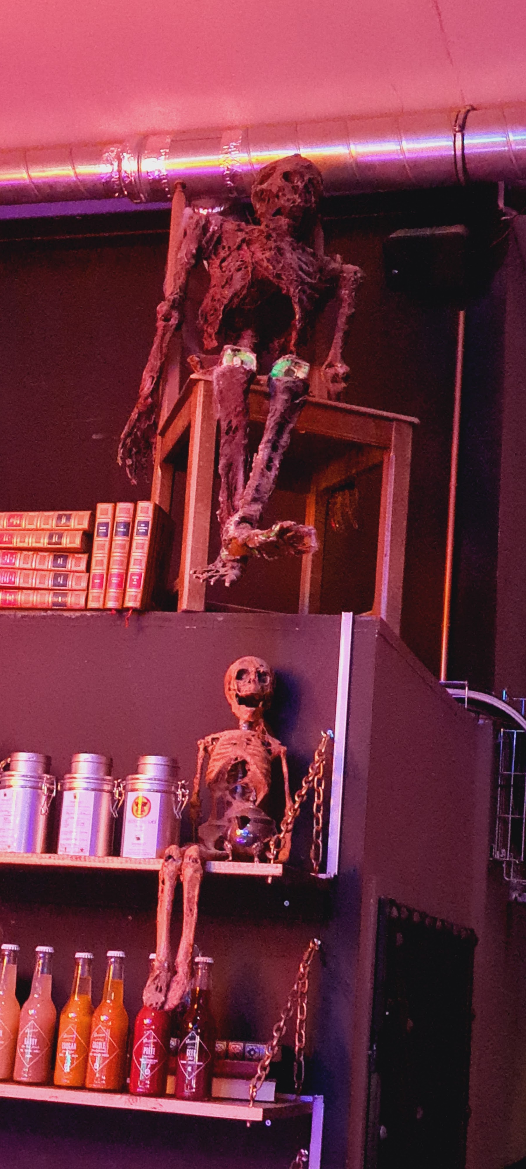 Super bar à thème magie noire où l’on peut jouer à quelques jeux ou faire des escapes games (sur reservations). Sonner pour rentrer.