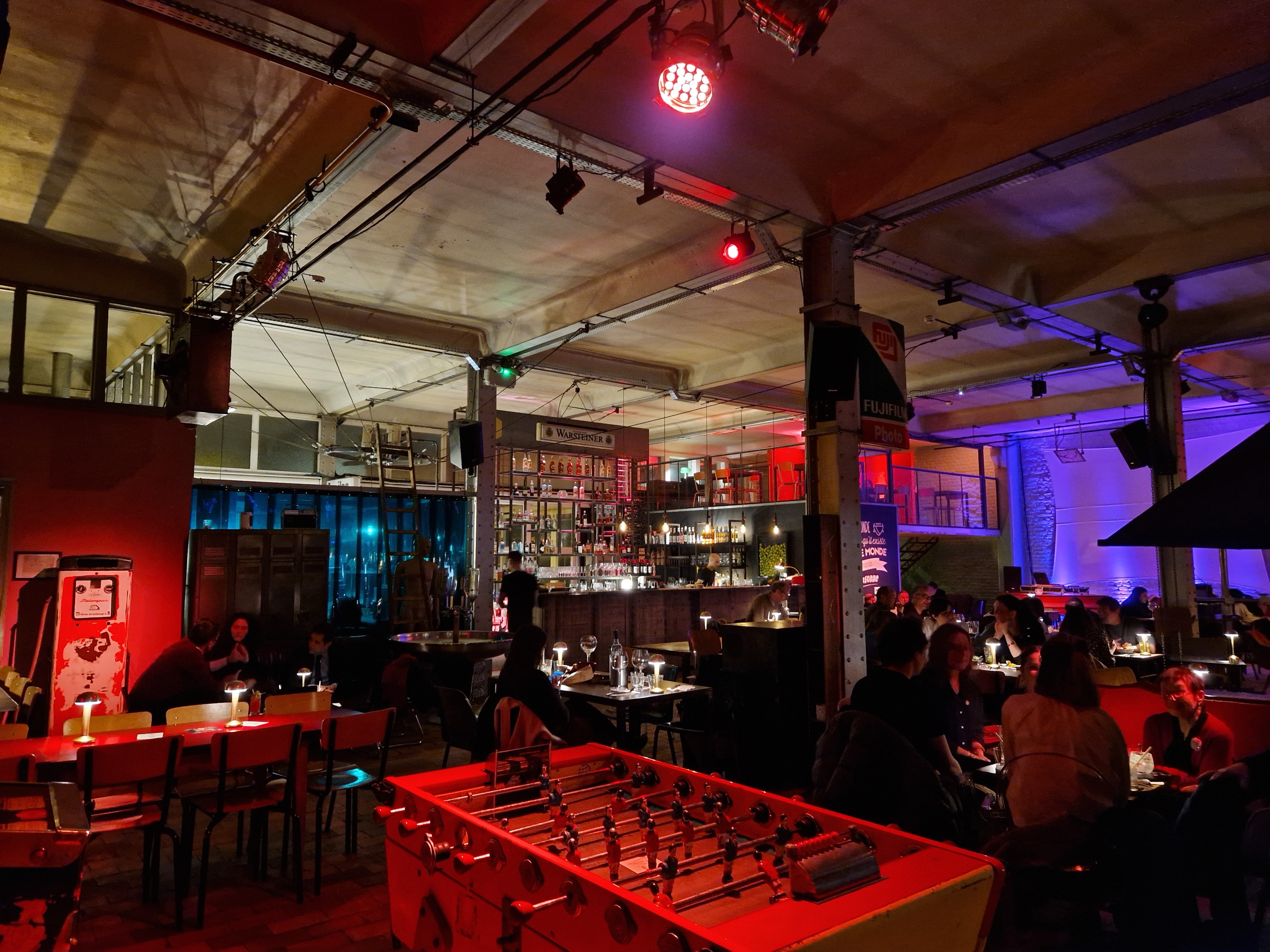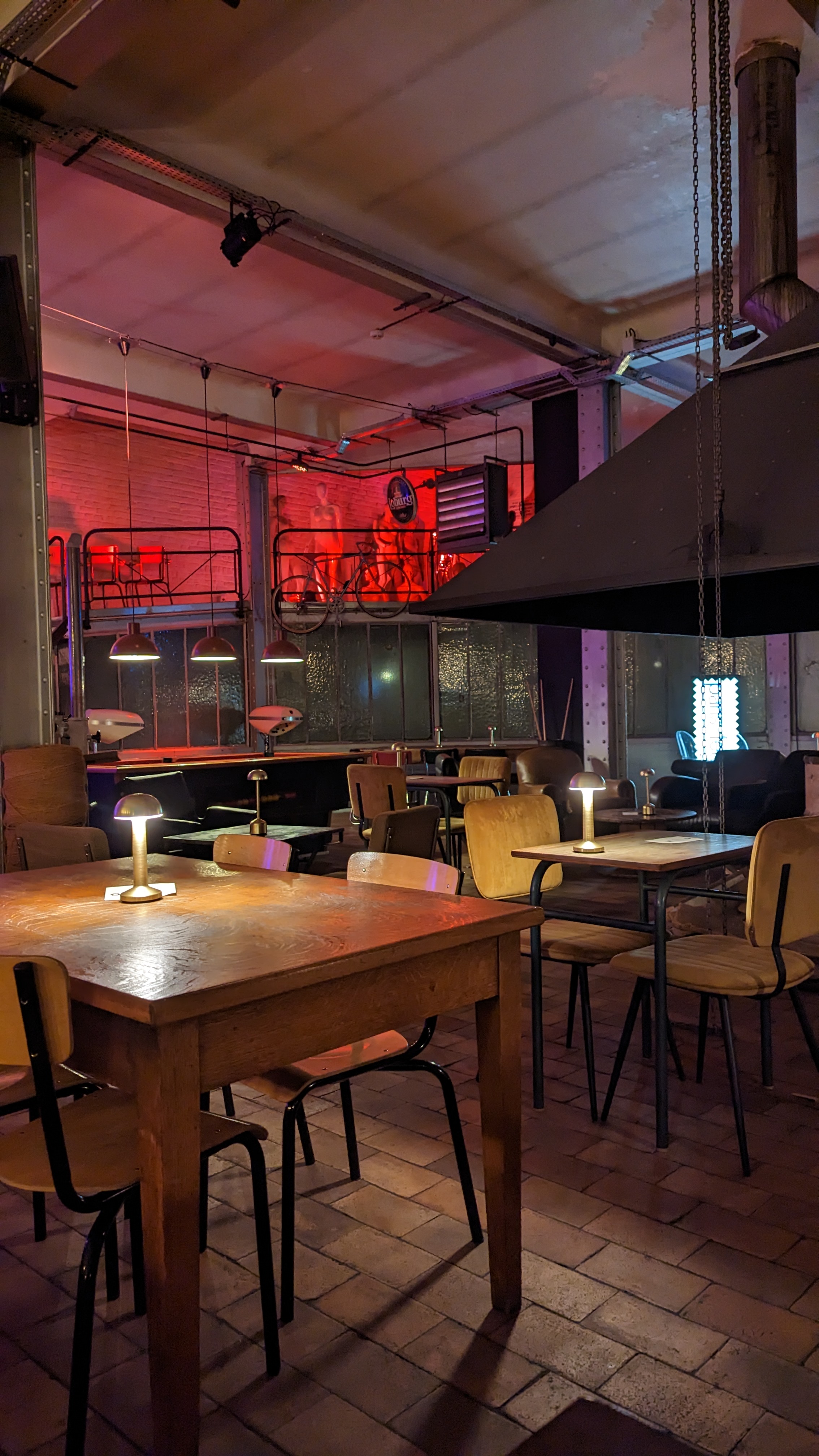 Un bar/restaurant branché, c'est une ancienne usine réhabilitée. Restaurant au rdc, espace bar avec jeux et musique et espace DJ pour danser plus tard le soir en haut. À faire entre ami.e.s ou famille, l'on peut également réserver un espace pour des évènements. La décoration est super et rétro, ils ont gardé des éléments de l'ancienne usine. Dommage qu'il n'y ait pas de bières pressions et d'options véganes en apéro.