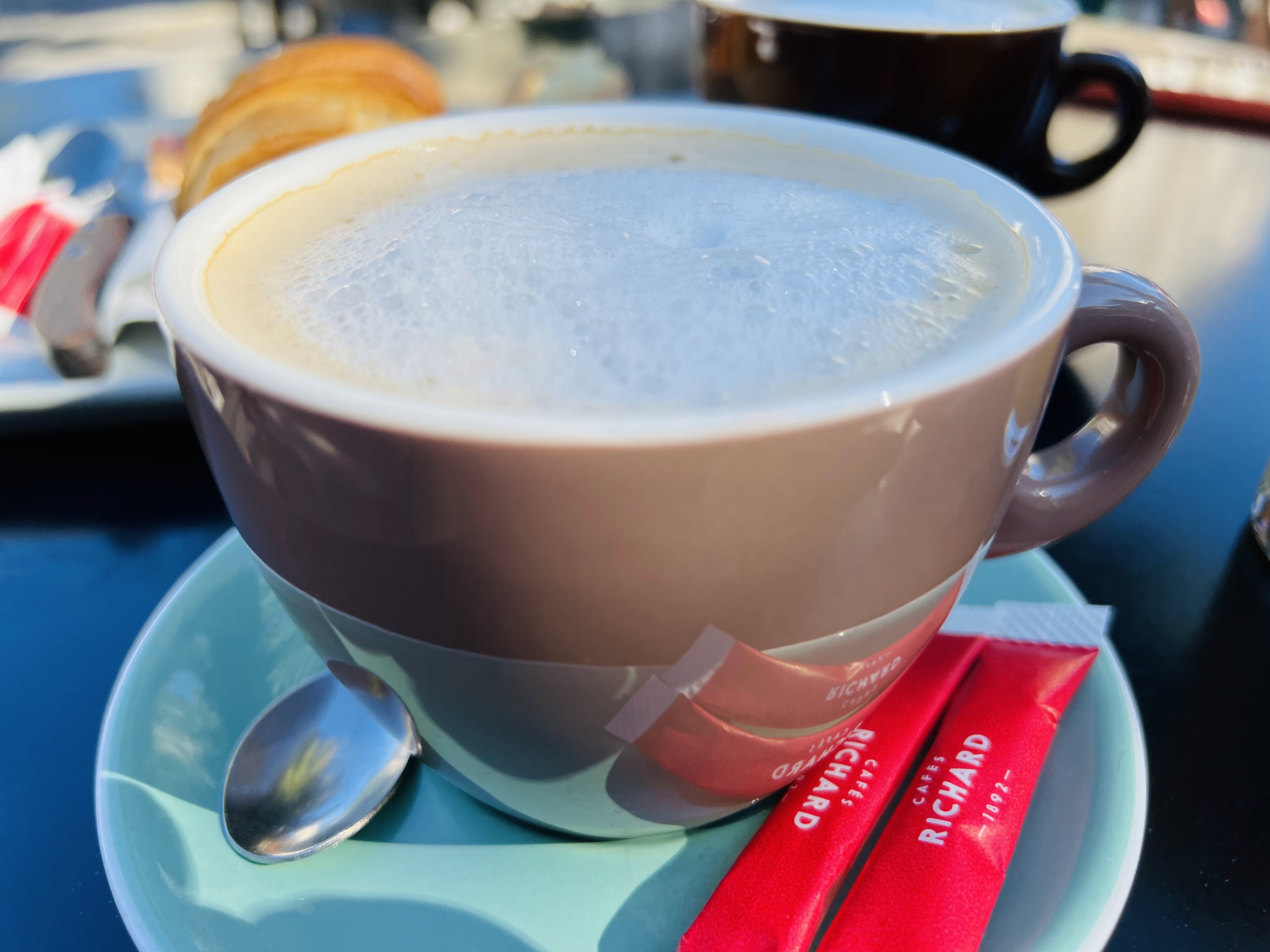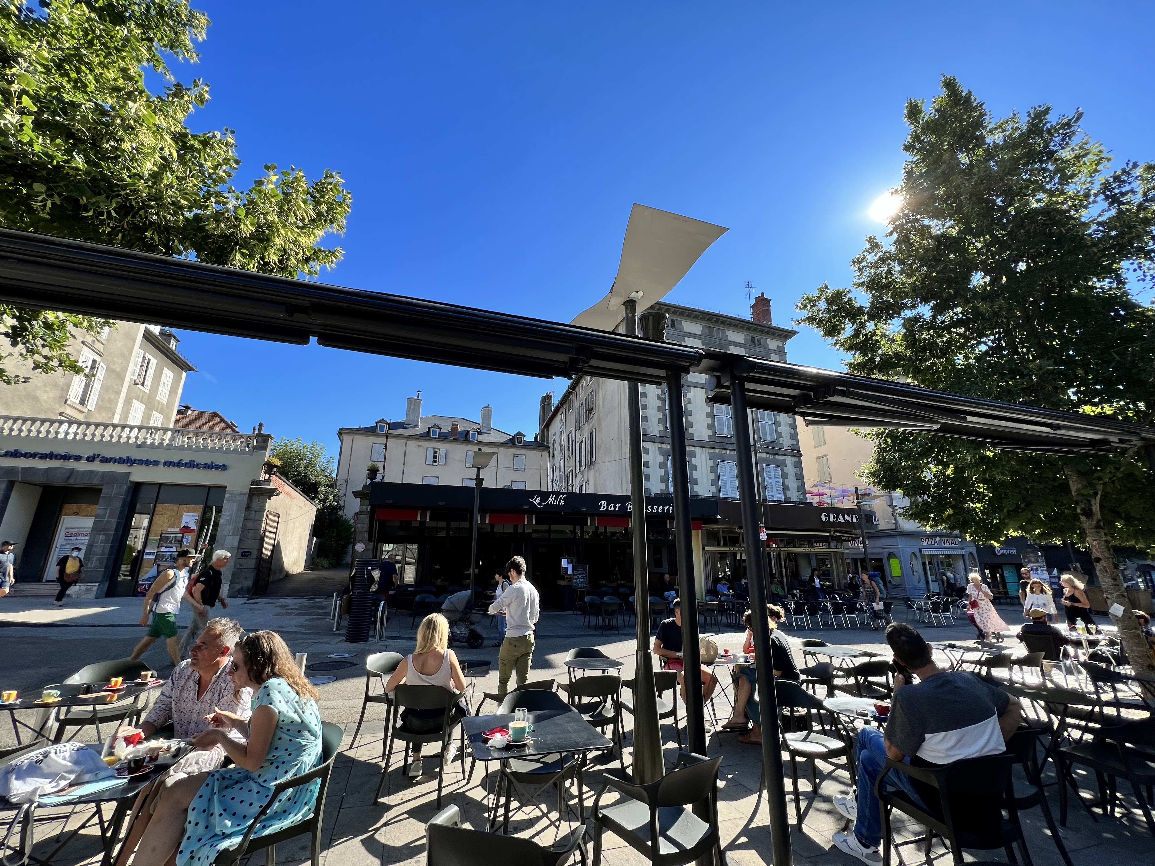 Je m assois sur la terrasse du bar Milkpour prendre un petit café et un verre d'eau en attendant de prendre le bus pour aller au bistrot du marché à Aurillac. Aujourd'hui le 22/06/17 Je venais me promener par le bus n' 50 pour aller au centre nautique puis le retour en ville chez Milk pour déguster le café