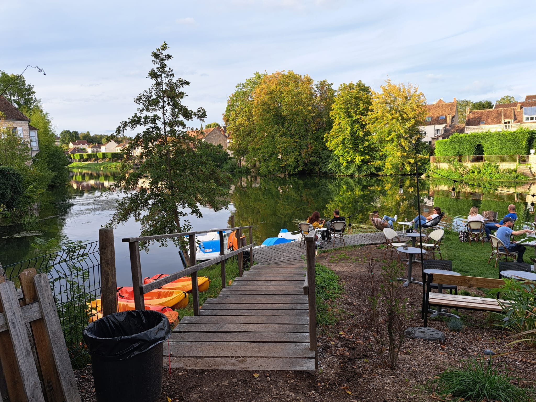 Détente, musique, alimentation. Très beau spot au bord du loing en plein centre ville. Soirées à thèmes
