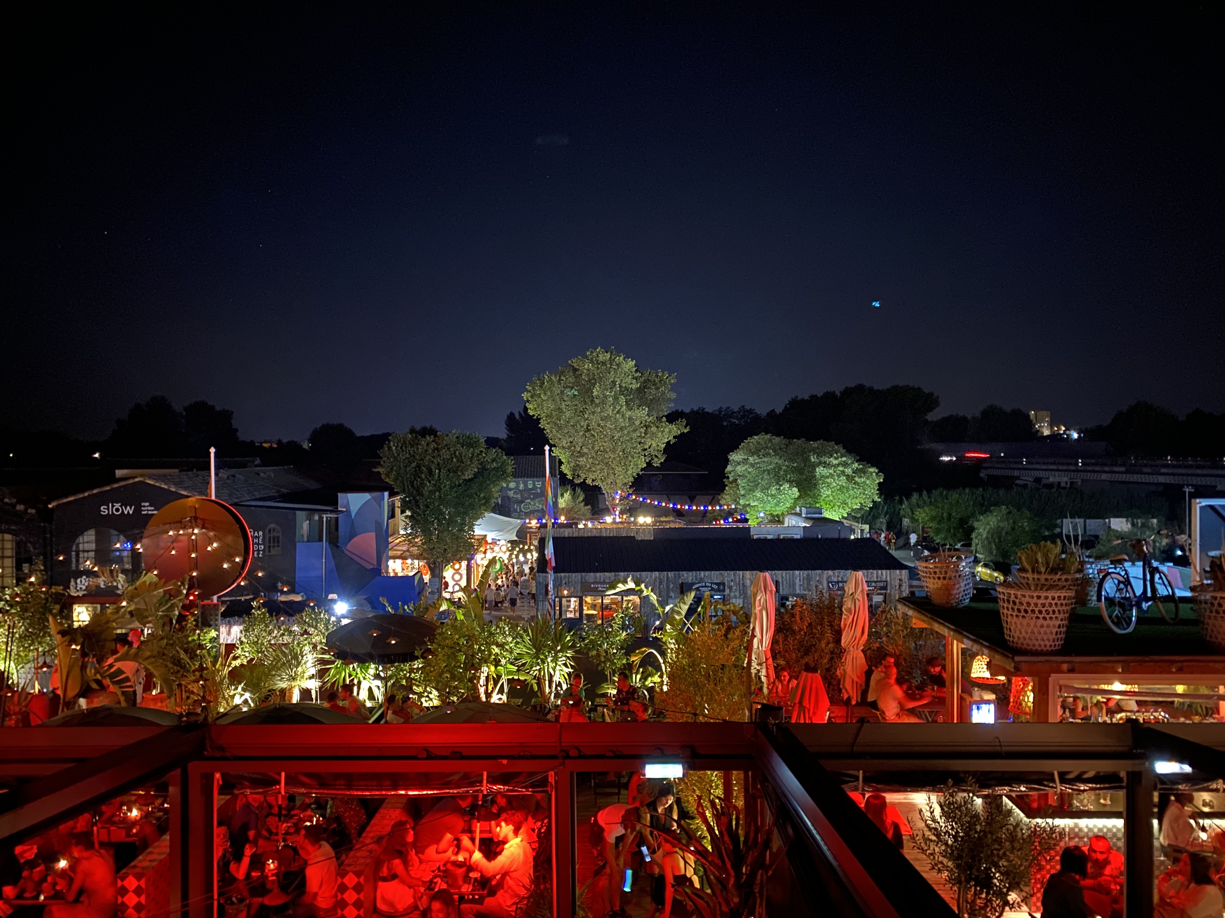 L'endroit est vraiment pas mal. J'ai pas eu l'occasion de manger là-bas. Mais pour passer une bonne soirée vous êtes au bon endroit. L'attente de votre commande est un peu longue... Il manque cruellement les indications ou se trouve quel bar/ restaurant... Un grand parking gratuit est un bonus mais! La possibilité de retrouver la voiture un peu abîmé est importante.
