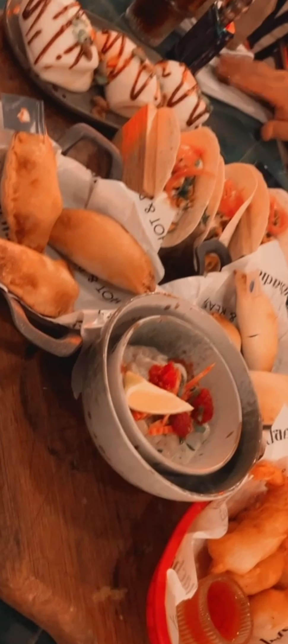 Restaurant festif très sympa, les tapas sont copieuses et bonnes, les serveurs sont aussi très disponibles et l’ambiance est top ! Gros bémol : pensez bien à demander la note pour être sûr du montant que vous payez !! Les serveurs ne nous donnaient pas la note et annonçaient seulement un montant global à payer. Résultat : la 1ere fois nous avons eu un écart de 20€ sur une note de 2 personnes, et la seconde un écart de 40€ pour une table de 3 ! C’est nous qui avons dû recalculer car la somme globale nous paressait étrange.