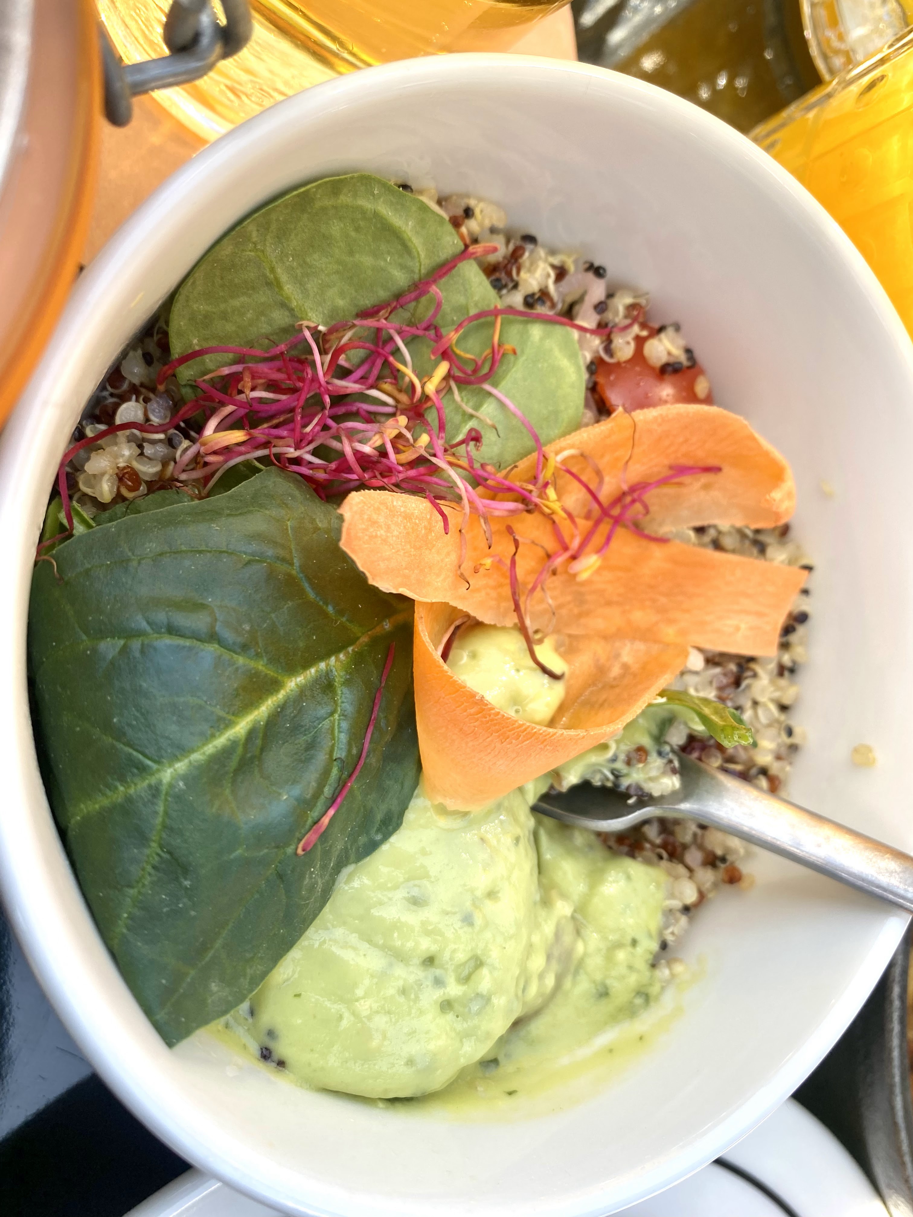 Brunch parfait , prix plus que correct, très copieux. On ne se fait toujours pas à la salade de quinoa, mais le reste est délicieux ! Ambiance chill de vacances avec une terrasse au soleil !