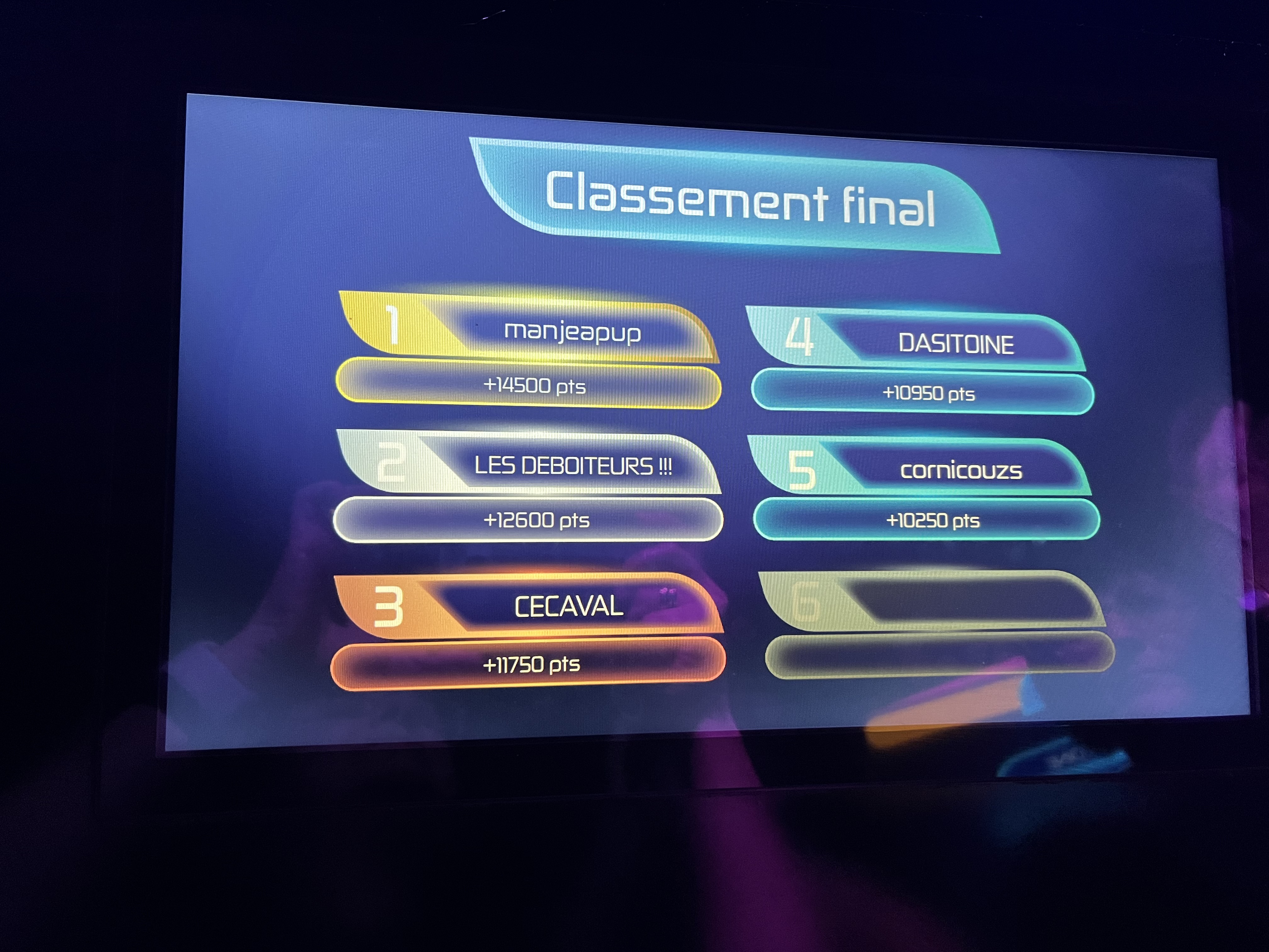 Super moment passé entre amis. On a beaucoup ri et on était totalement dans la compétition ! J'aurais juste pour ma part apprécié un petit tour d'échauffement pour l'utilisation des différents jokers. On devra donc y retourner !