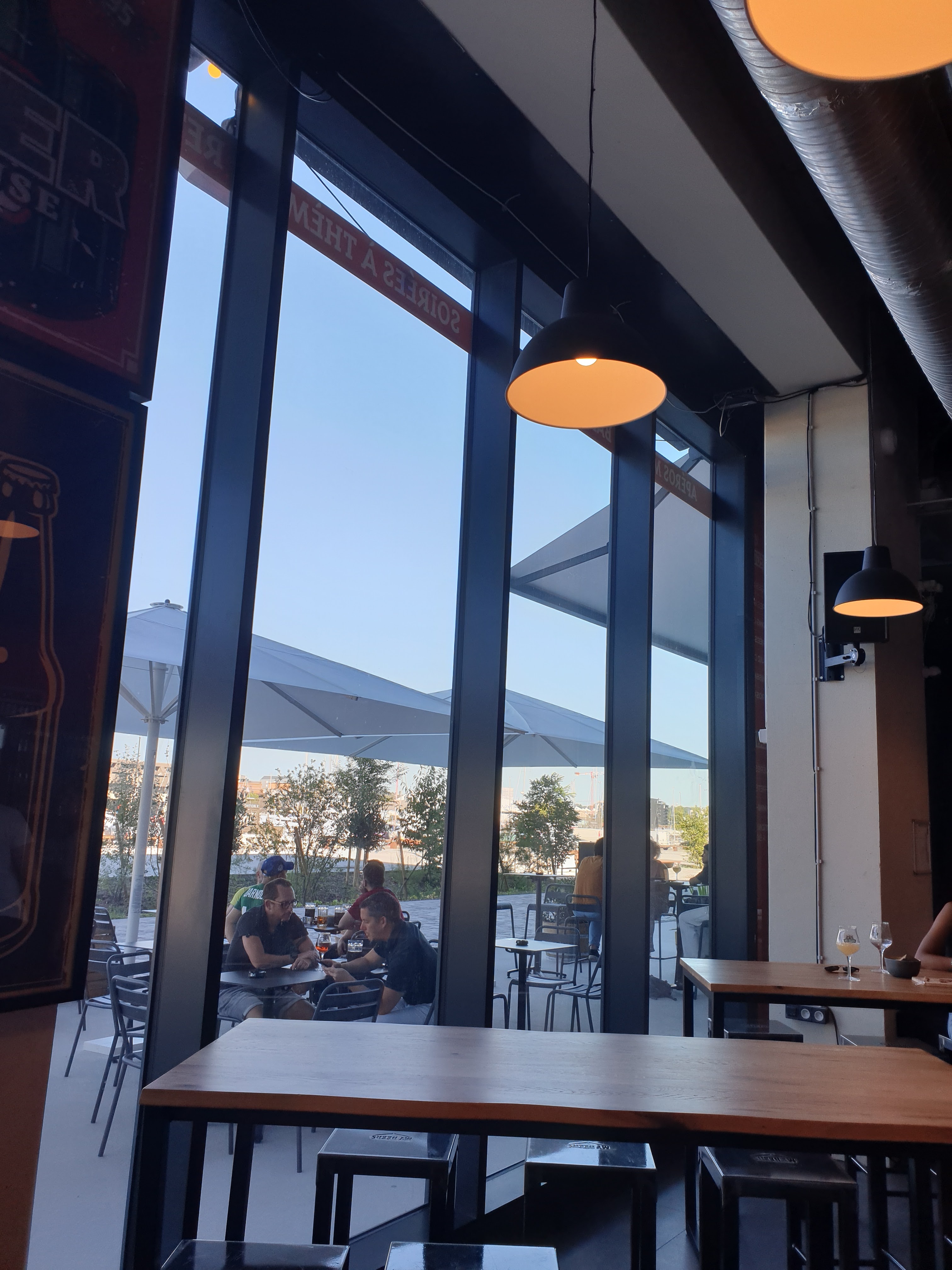 - Bar avec vue sur le bassin à flot, - un large choix de dégustation de bières de tout types. De quoi voyager sur les sensations. - Des plateaux charcuteries et fromages de qualité. - Le tout sur des prix raisonnables. - Ambiance très sympa avec le staff Julien et Fanny qui se chargent de vous conseiller et à ce que tout se passe bien. - La salle est spacieuse avec écran pour le sport, une terrace spacieuse. Juste un conseil d’ajustement : les lumières sont trop fortes et blanches. L’Ambiance plus tamisée mettrait plus de cosy et un côté intimiste. Ça me faisait un peu mal aux yeux.
