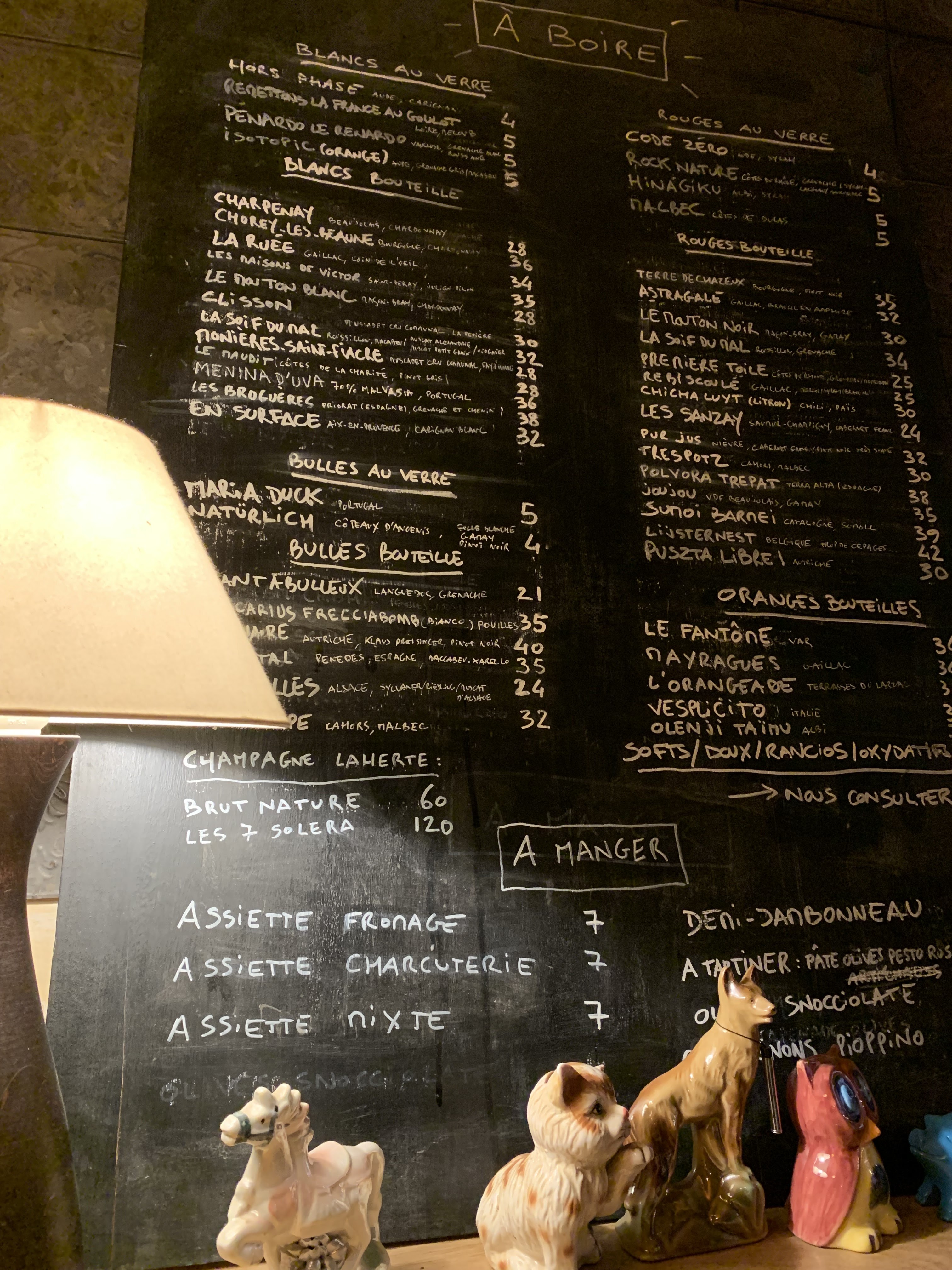 Une superbe adresse. La carte des vins est riche et variée, de beaux vins nature et surtout une équipe au top. De bons conseils, de belles découvertes, un cadre agréable (même la musique est top et on peut s'entendre palabrer des heures...). Pour les amoureux des belles choses, adresse idéale, à faire et à refaire.