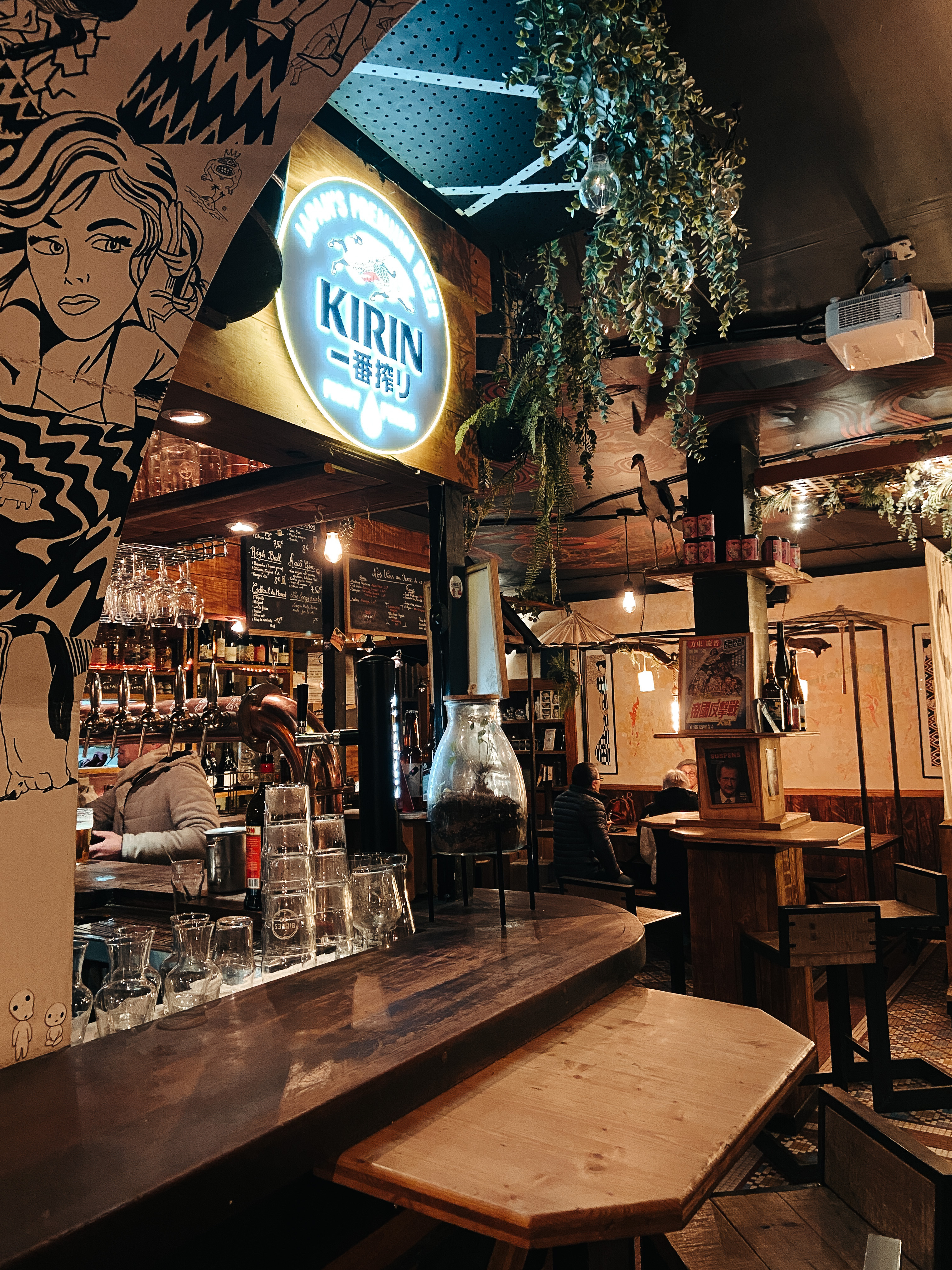 Qualitative sélection de bières pression, à marier avec de delicieuses propositions de street food japonaise (okonomiyaki, takoyaki...). Présence d'au moins une très bonne bière sans alcool. (Brasserie La Débauche). Déco très originale sur le thème de la culture japonaise, ambiance convivale. Staff très sympathique. Possibilité d'améliorer encore l'originalité des propositions en pression car de grosses brasseries craft connues sont présentes. Seul bémol, la cuisine ayant fermé un tout petit peu plus tôt qu'annoncé sur ardoise (sauf erreur), il aurait été malin de passer annoncer les dernières commandes possibles. A recommander vivement ! Je reviendrai sans aucun doute