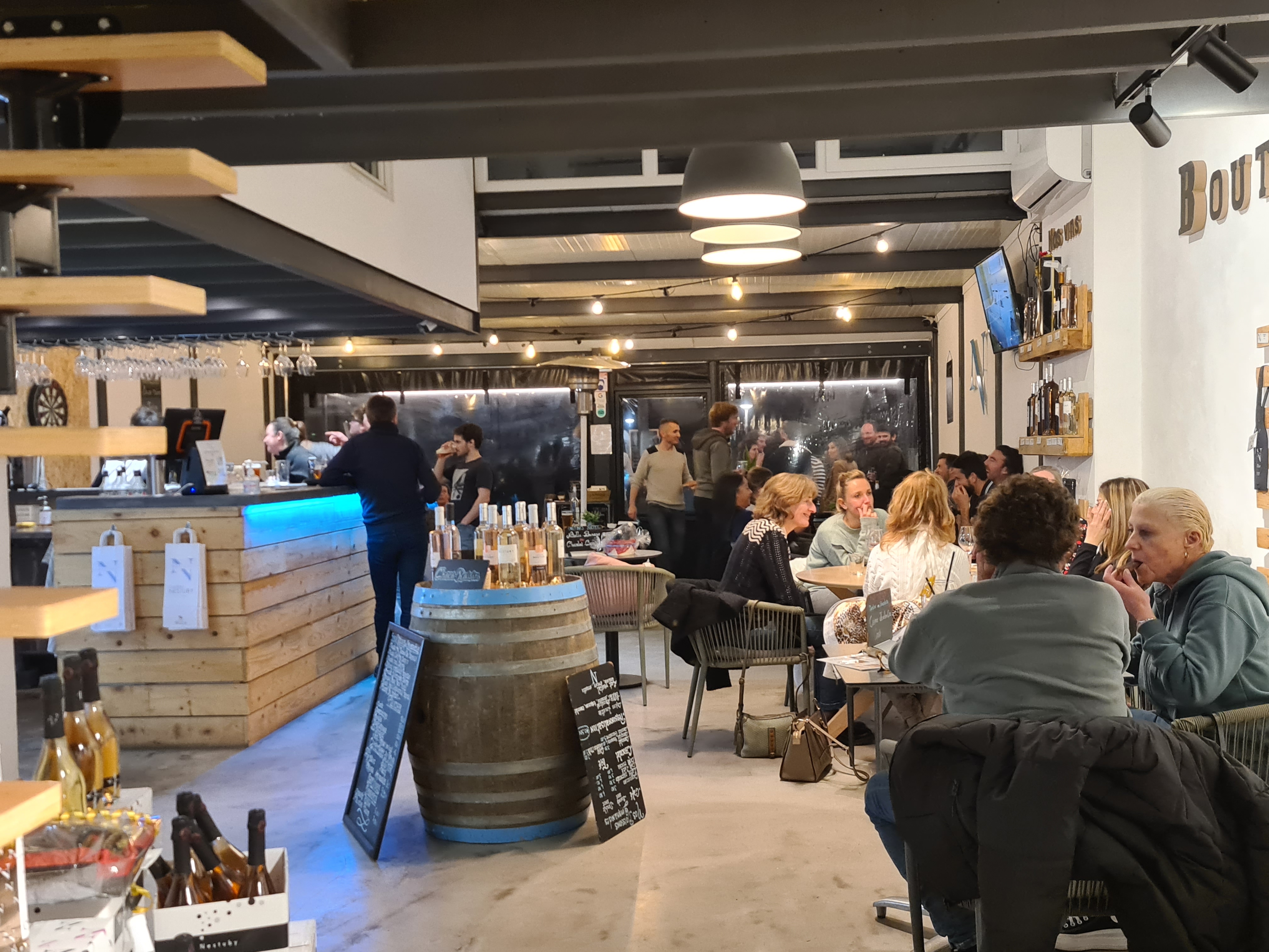 Notre petite adresse du dimanche soir Excellent accueil excellent vin et planches et bruschettas au top Produits frais et faits maison Un bar à vin qui propose également tout un assortiment de produits artisanaux où le local est mis à l'honneur Tout cela à prix très corrects Cela fait du bien d'avoir de beaux établissements comme cela sur le port de Hyères Allez y sans hésiter!!