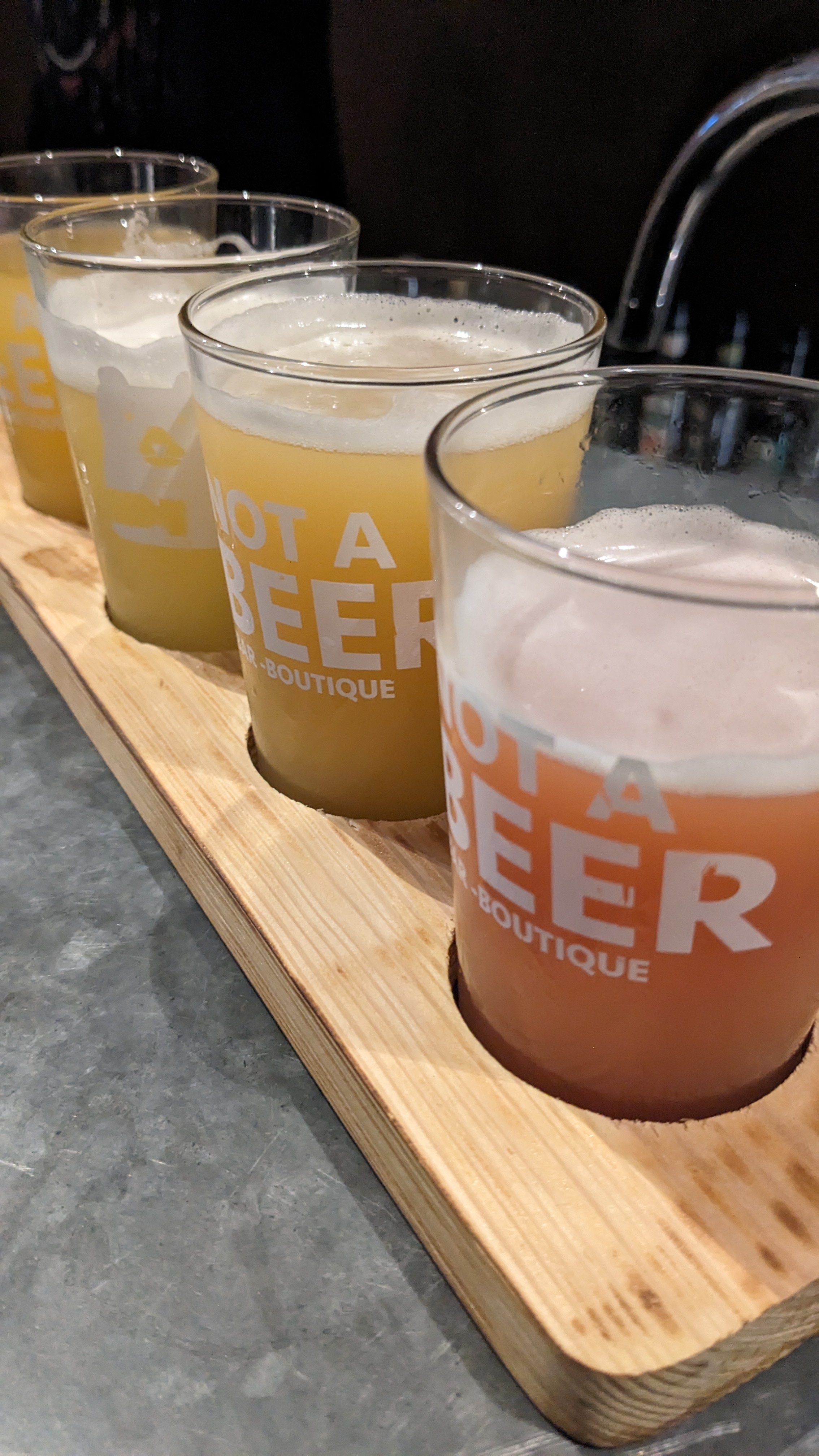 avis pour le bar not a beer ma visite : un accueil très chaleureux et une infinité de choix de bières aux arômes diversifiées. le responsable et les serveurs connaissent leurs produits a la perfection et vous renseigne face a votre envie du moment. l'ambiance y est calme et cella me plais fortement pas odeur de cigarette ou de personne qui parle trop fort un moment agréable de dégustation . mon avis : venez vous faire câliner par l'ours je recommande.