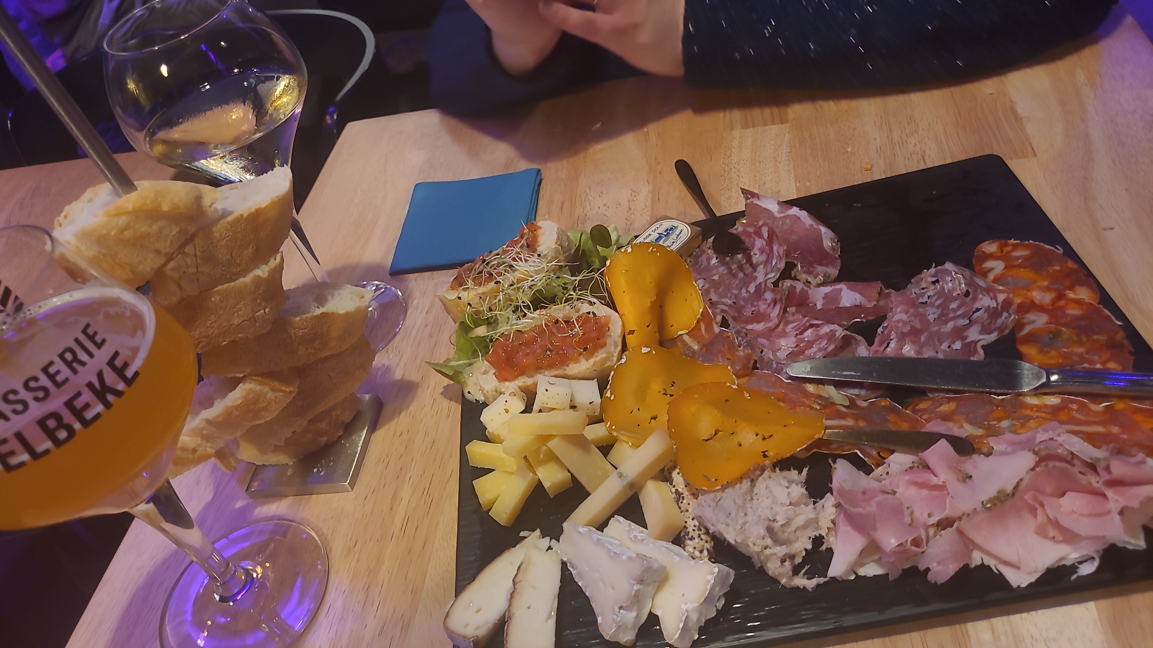 Apéro parfait. Très bonne bière locale, planche Apéro Très sympa.