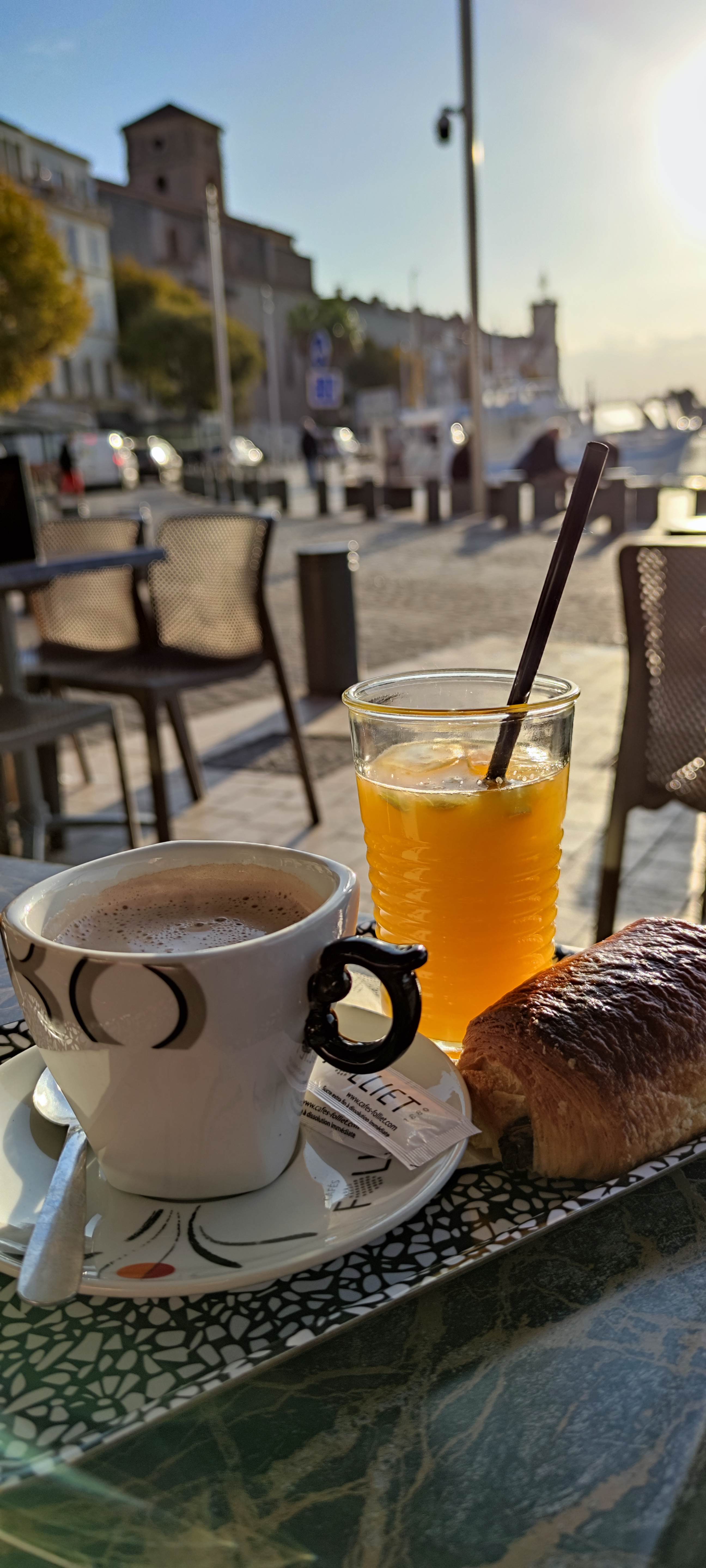 Pour commencer une bonne journée, un petit café en terrasse sur le vieux port sous le soleil...