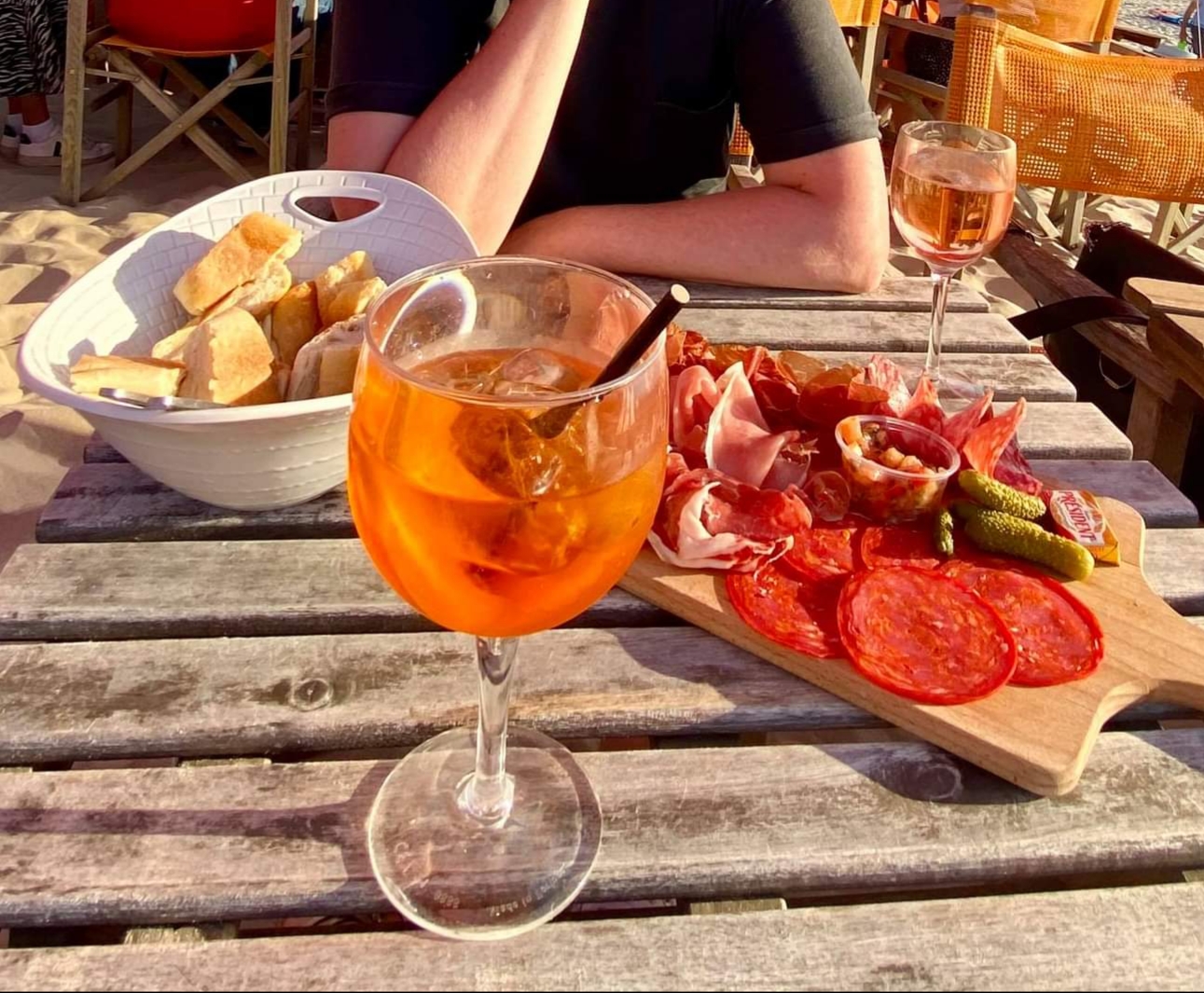 Accueil super, les pieds dans le sable, un bon endroit pour finir la journée et admirer le soleil se coucher lentement avec un verre et une planche apéro.