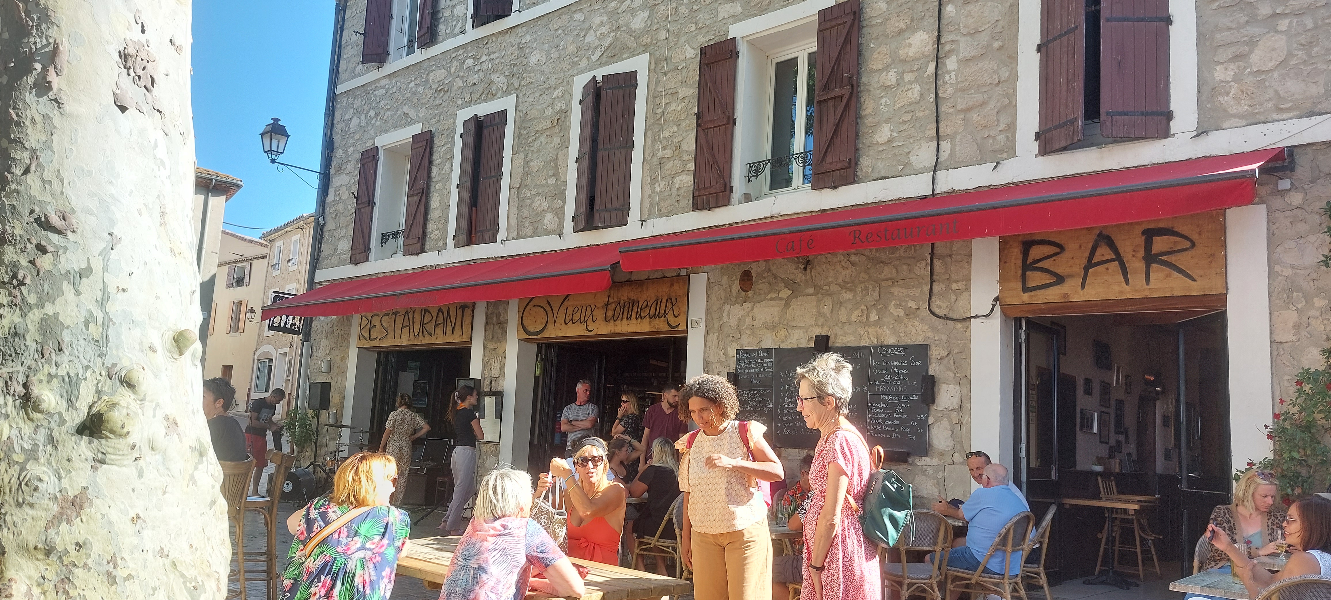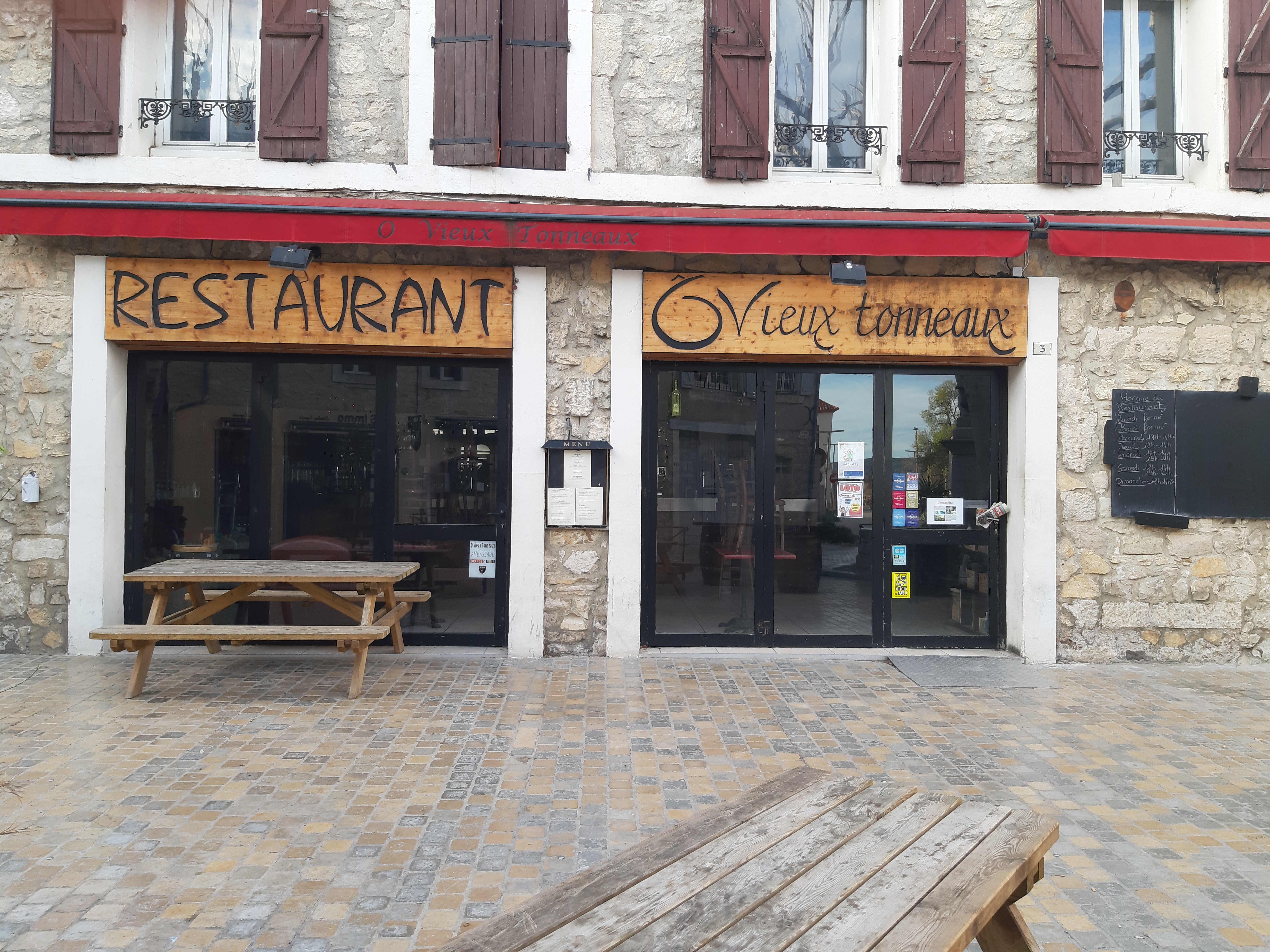 Nouvelle équipe aux commandes du Vieux Tonneaux et l’aventure se poursuit. Toujours une superbe ambiance où les villageois côtoient les visiteurs. Et le restaurant gagne une belle salle supplémentaire dans l’ancien marché couvert du village.