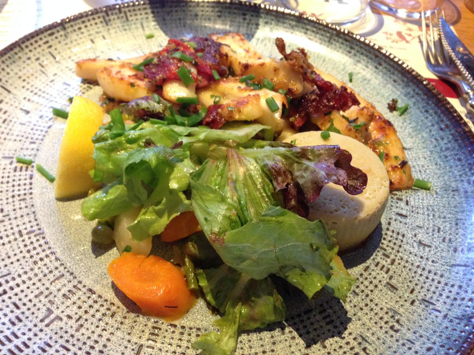 Nous y sommes allés à pied sur les conseils de notre hôte, les chambres du moulin. Ce restaurant traditionnel est situé au centre du village place de la mairie, est tout à fait adapté à cet endroit. C’est également un café qui était bondé à l’heure nous y somme allé, mais heureusement une petite salle de restaurant est attenante à la salle principale. L’accueil est très sympathique, la décoration typique, le service efficace et les plats très bons. Ce restaurant a des spécialités de poissons, et de viande, l’ensemble à prix très correct.