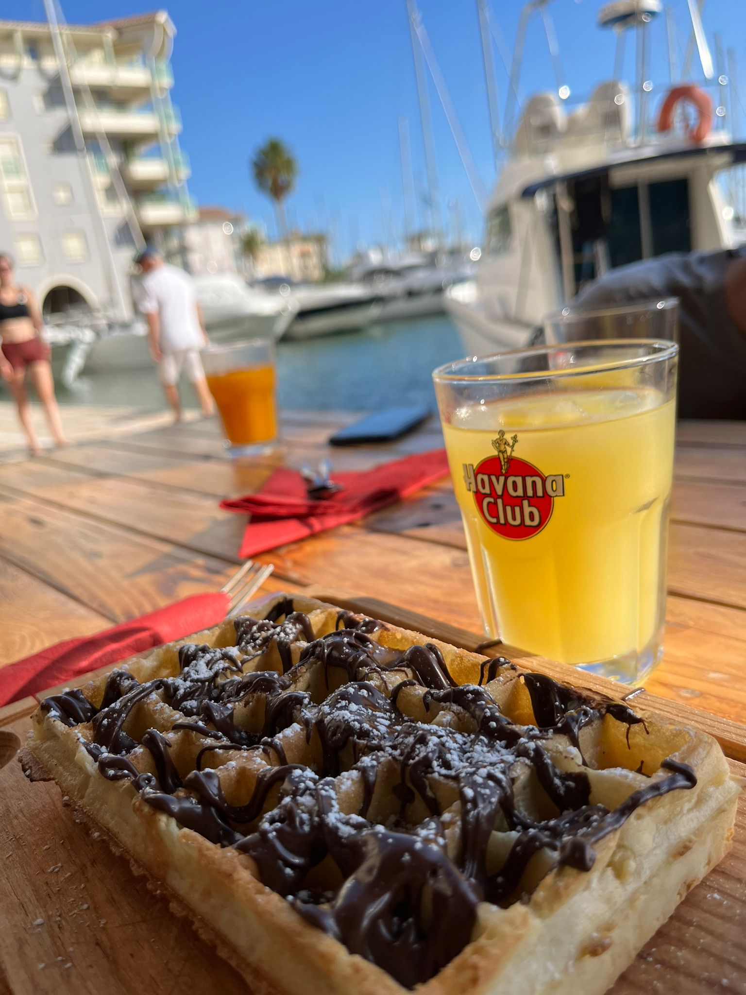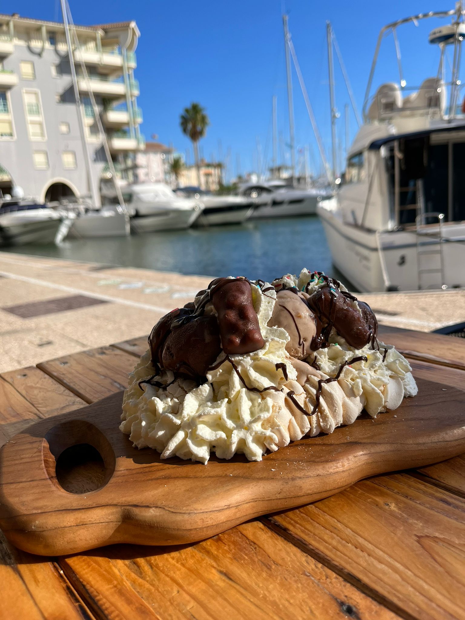 Bel emplacement dans le port de Fréjus. Bonne bière belge 🍺 à la pression et énormes coupes glacées 🍨