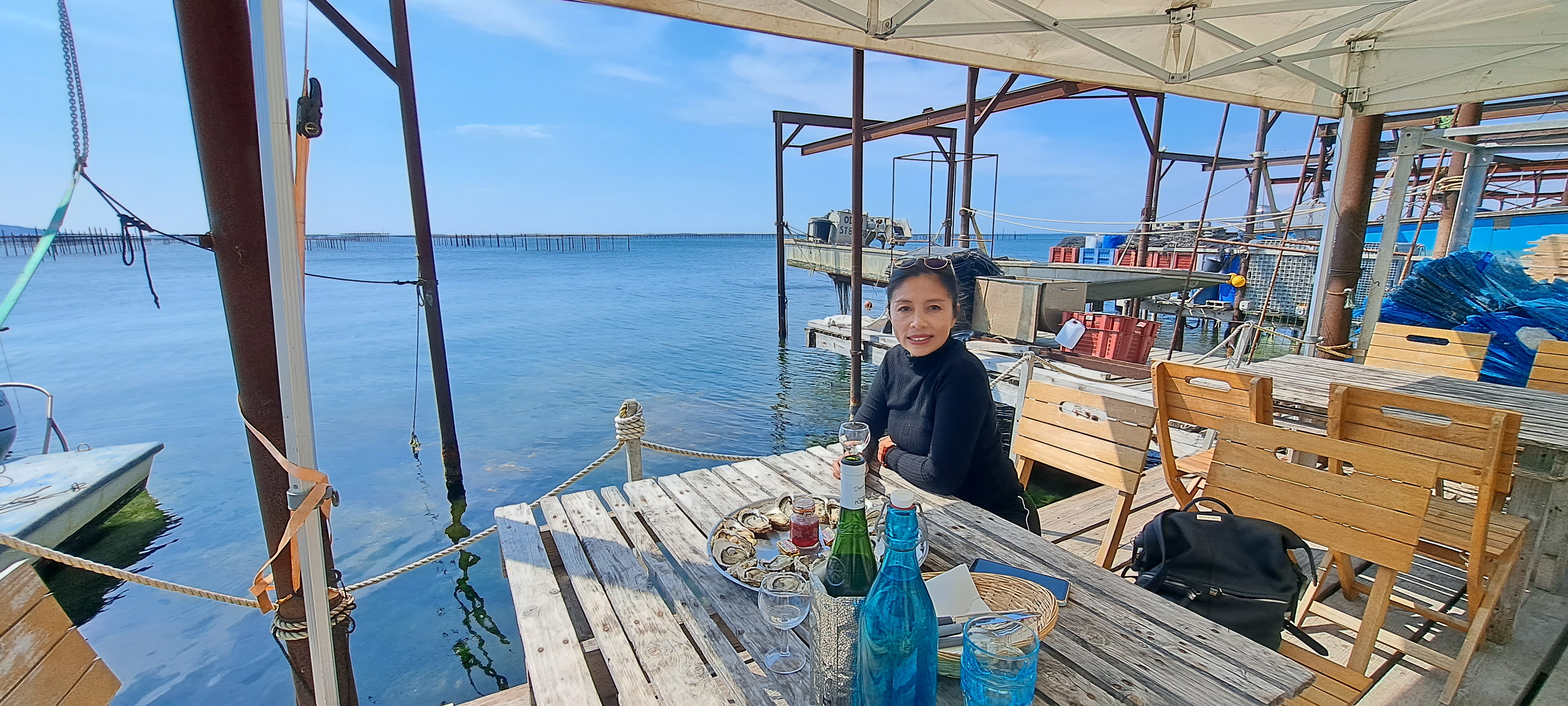 C'est un lieu atypique, au bord de l'étang de thau, face aux parcs des huîtres. Je le conseille. Nous avons bien mangé