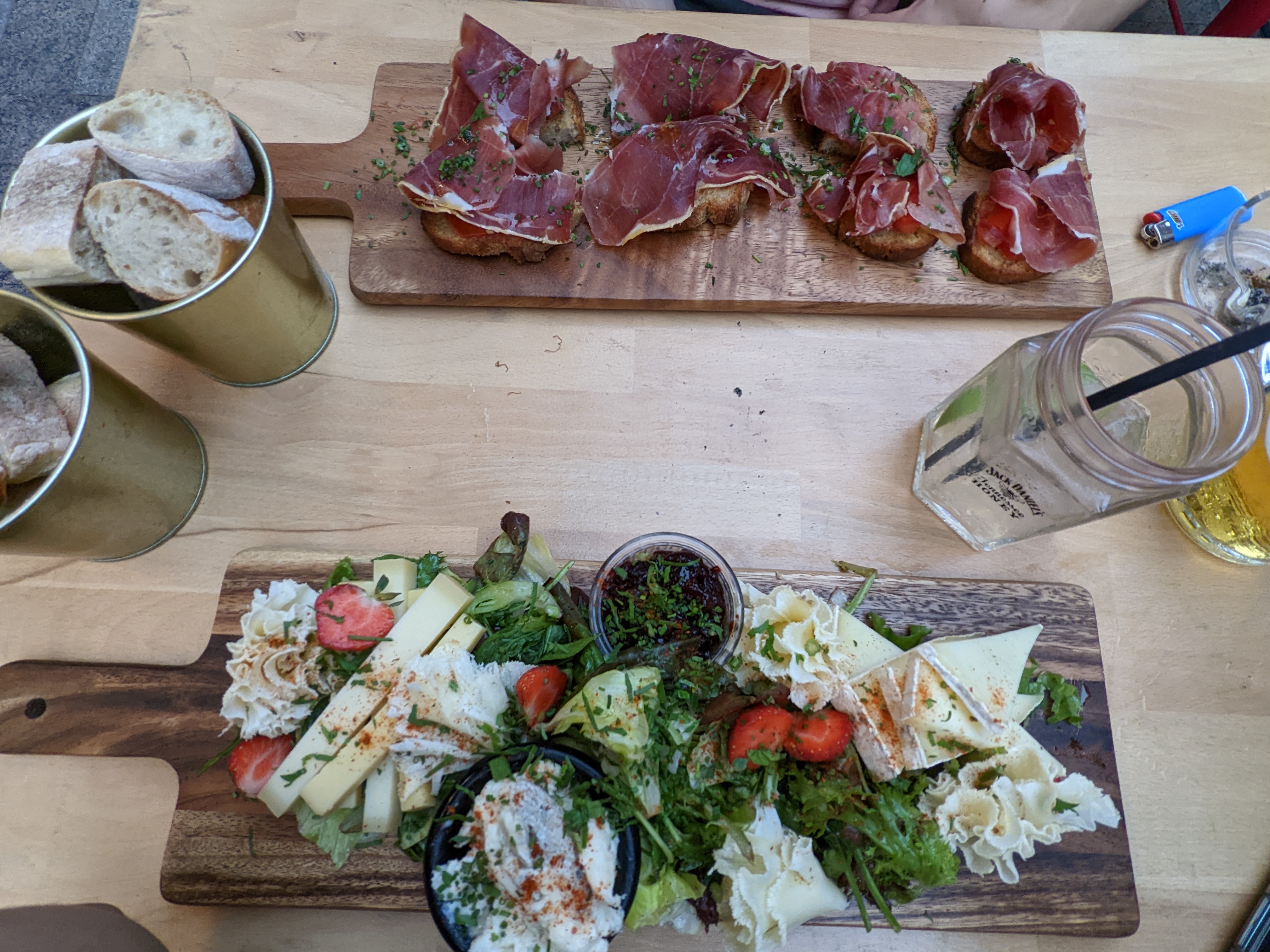 Un bar très sympa, bonne ambiance, service agréable. Planche mixte en apéro plutôt bonne Pensez à réserver pour manger pour boire le soir ça passe normalement Attention les planches à partager ne le sont pas toute la soirée