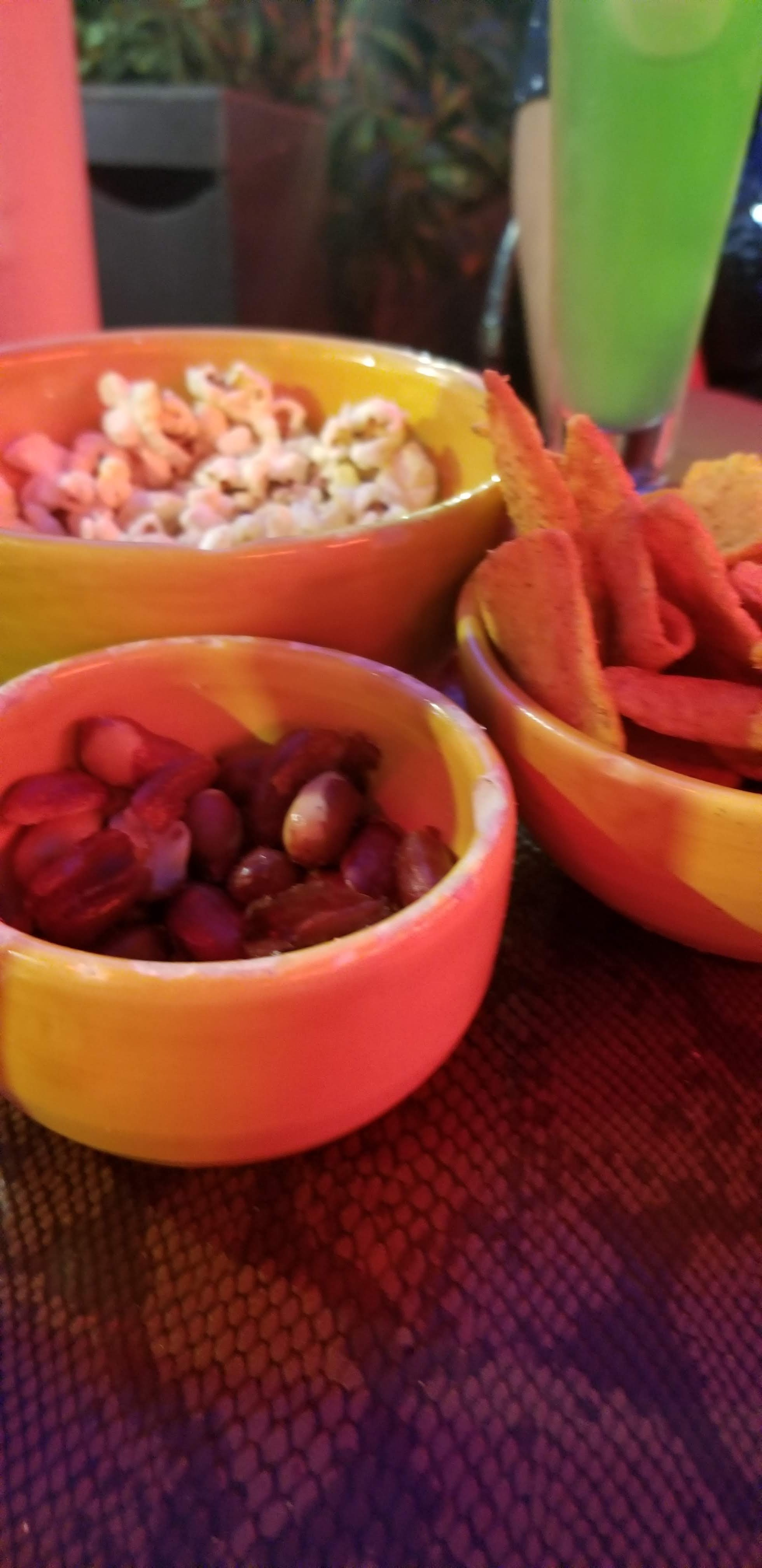 Bon cocktail en début de soirée avec popcorm Accra et cacahuète puis plus tard dans la soirée de très bonne glace avec un spectacle de danse brésilienne.. Une équipe jeune et serviable et très agréable.. A recommander
