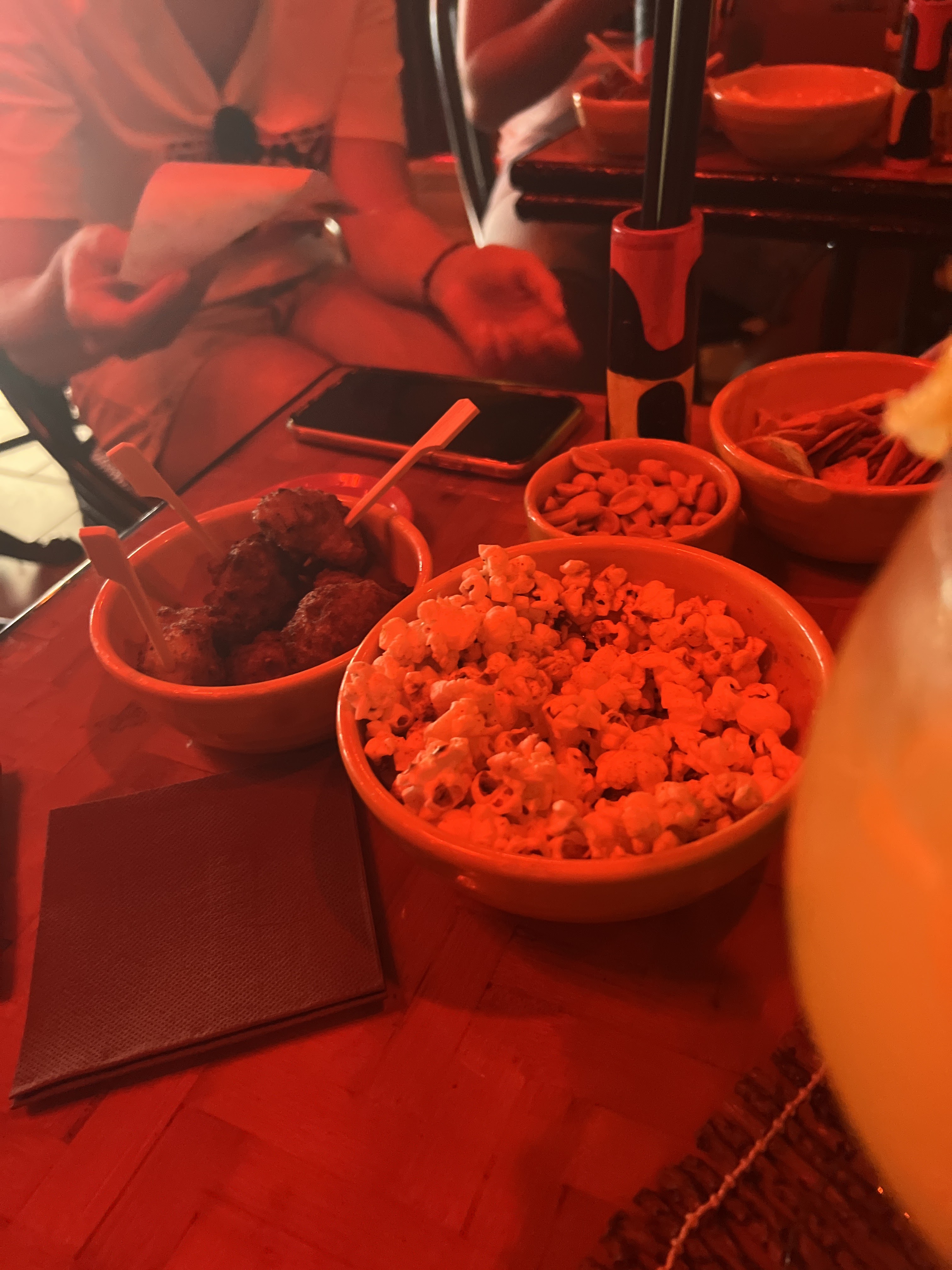 Très bonne expérience, un accompagnement complet sera servie avec votre cocktail et c’est rarement le cas, 5-6 Accra de morue, chips tortilla, pop corn et même olives ! De quoi satisfaire les gourmands !