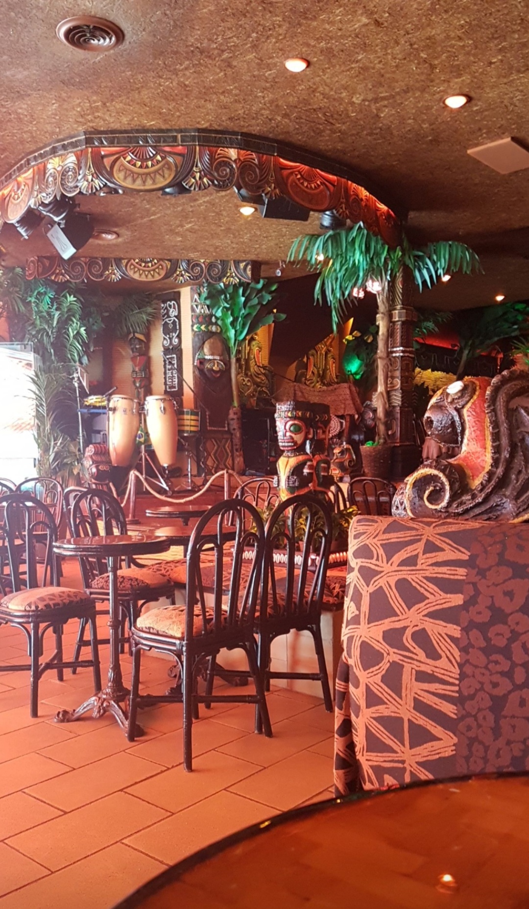 Le meilleur endroit pour se détendre pendant l'été chaud. Bel intérieur brésilien/africain avec machine hydratante et conditionneurs qui fonctionnent bien. Ce sont des aspects importants pour un séjour confortable, mais ce ne sont sûrement pas les seuls par lesquels je juge cet endroit. des cocktails ! Les cocktails sont fantastiques ici, ils ne diluent pas l'alcool avec de l'eau, mais si vous le demandez, ils peuvent le diluer avec d'autres ingrédients que l'alcool, en fonction de la composition de votre cocktail. Naturellement, ils les rendent vraiment forts (enfin, au moins, cela semblait être fort pour moi et ma copine) Et il suffit de regarder la façon dont certains de leurs cocktails sont décorés (singes, maisons, tubes, coquillages) Venez ici avec des enfants ou avec des parents, mais aussi entre amis et collègues, cet endroit convient à tous, même à ceux qui ne boivent pas d'alcool !