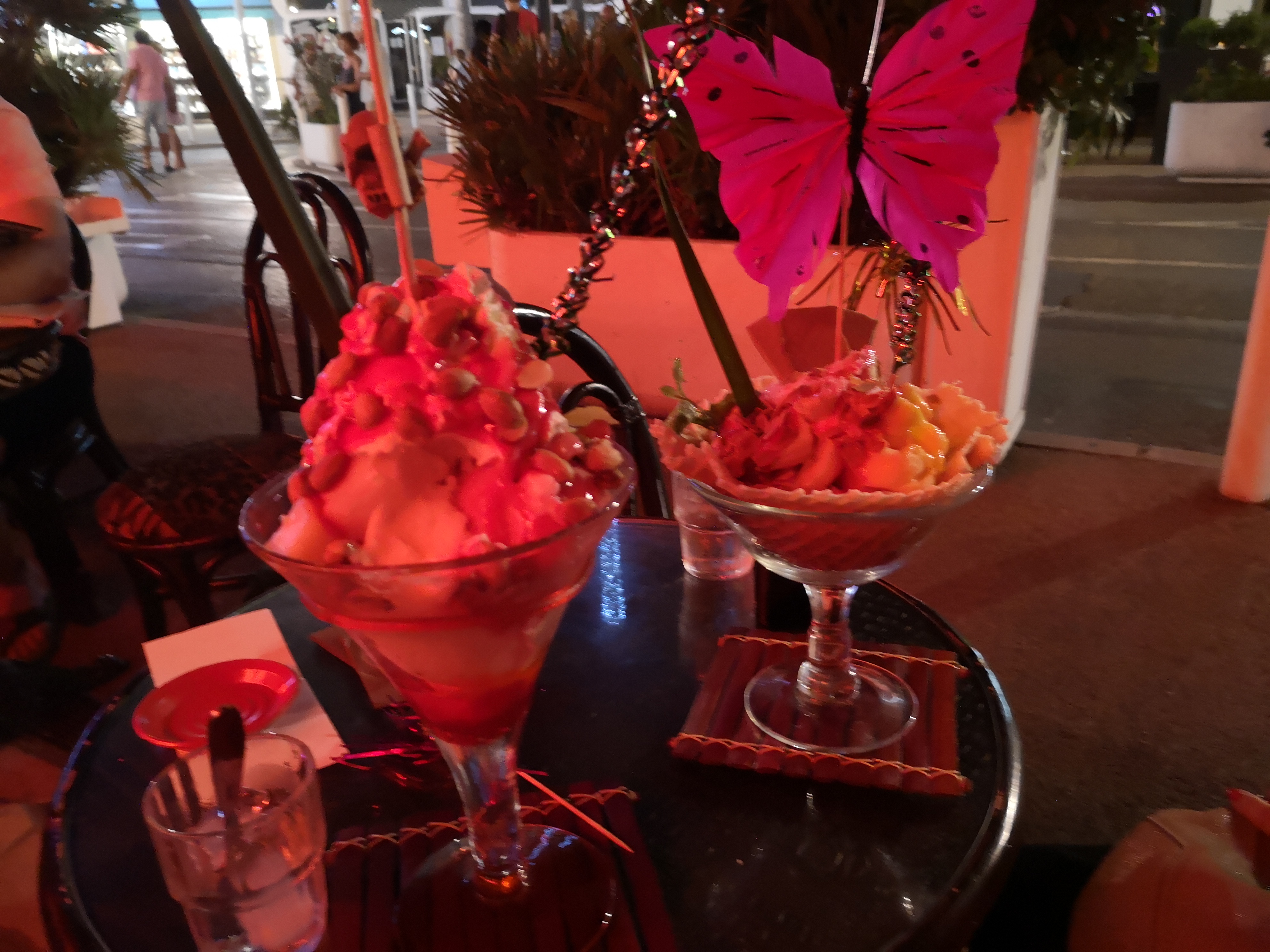 Si vous êtes de passage sur Antibes ou Juan les pins, il faut vous y arrêter ! Cadre incroyable, atypique, deco magnifique et spectacle le soir. Les glaces sont énormes !! Les cocktails un peu chers mais pour l’ambiance générale, ça vaut le coup d’y passer ! Merci pour ce moment