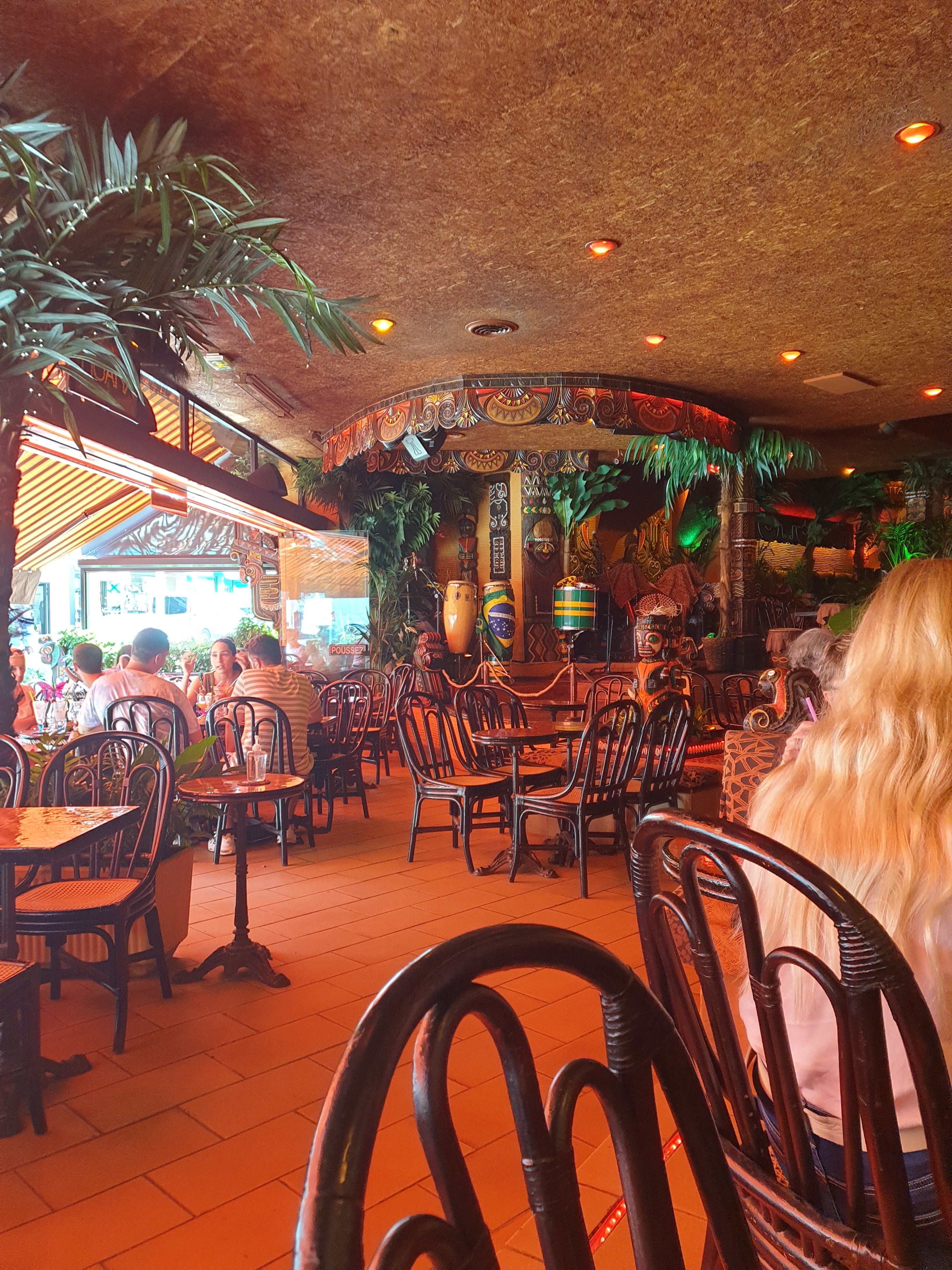 On passe un très bon moment à écouter et voir les musiciens et danseuses brésiliennes tout en dégustant de sublimes rhums, cocktails, ou glaces. La déco est également sympa, service rapide, prix élevés tout de même en adéquation ac le cadre.