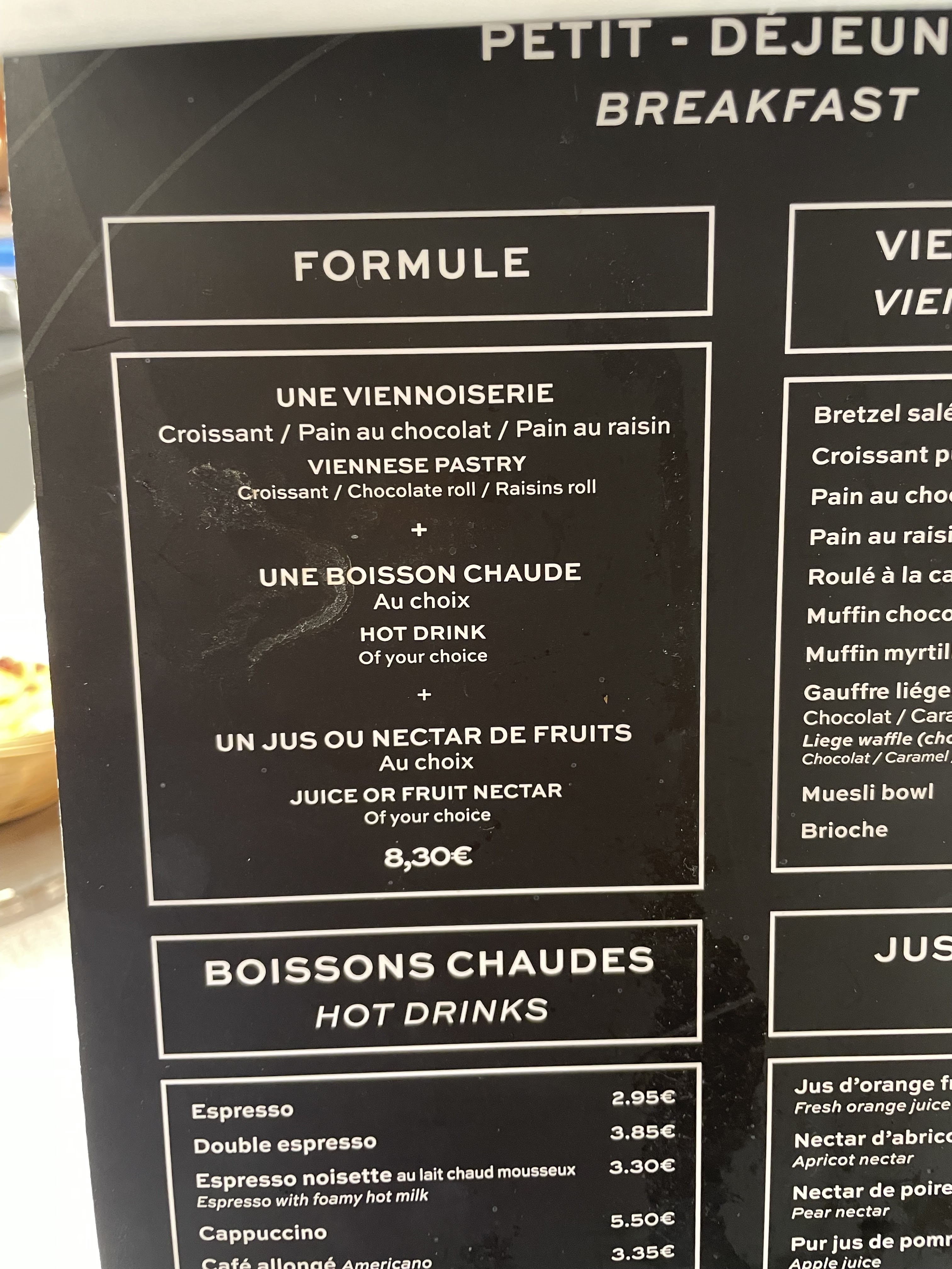 Il est 8h45, il n'y a plus de formule petit déjeuner car plus de jus de fruits.... Pas de formule , j'ai plus de jus d'un ton sec, agacé, comme si on pouvait le deviner....La serveuse (Sandrine) a oublié son amabilité chez elle : pas un sourire, mal-aimable... Les seuls sourires : uniquement avec son collègue....