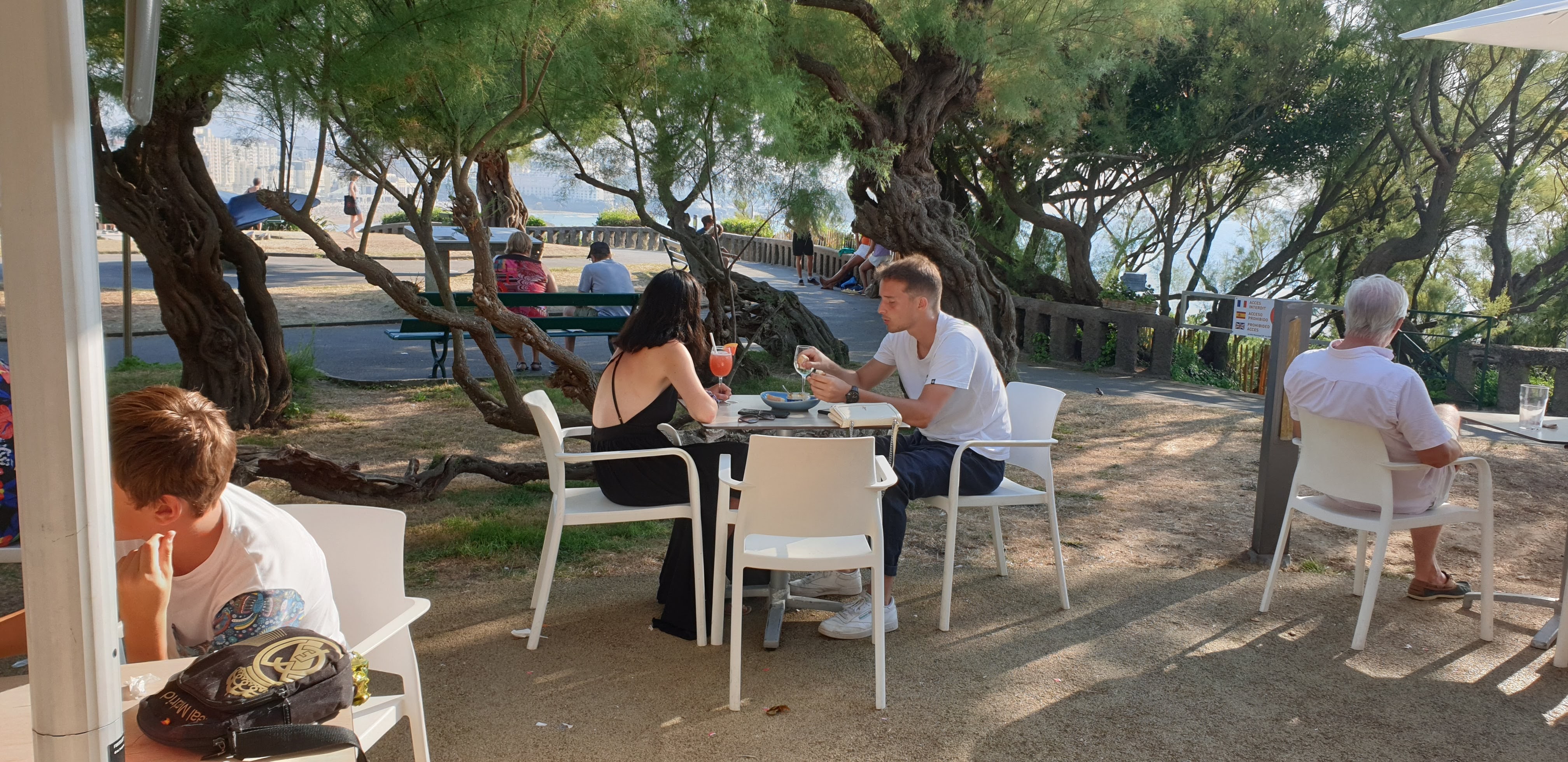 Emplacement à ne pas rater, au calme de la circulation, très belle vue de biarritz et de l'océan, personnel agréable cependant un petit bémol pour la nourriture notamment le poulpe a la Gallega qui ne justifie en rien un prix à 14 euros pour une assiette composée de patates bouillies achetées sous vide et du poulpe